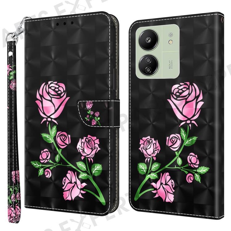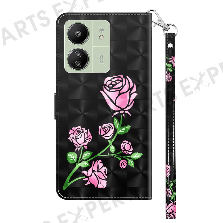 For Xiaomi Redmi 13C 4G / 13C 5G / Poco C65 4G / Poco M6 5G / 13R 5G Magnetic Phone Case 3D Pattern Printing Wallet Cover - Rose Flower