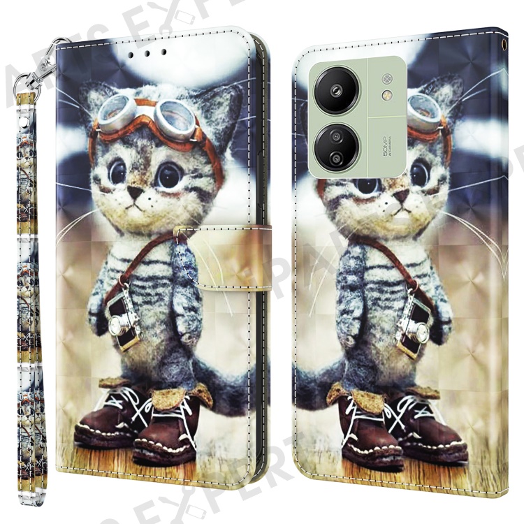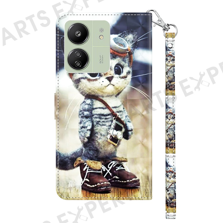 For Xiaomi Redmi 13C 4G / 13C 5G / Poco C65 4G / Poco M6 5G / 13R 5G Magnetic Phone Case 3D Pattern Printing Wallet Cover - Standing Cat