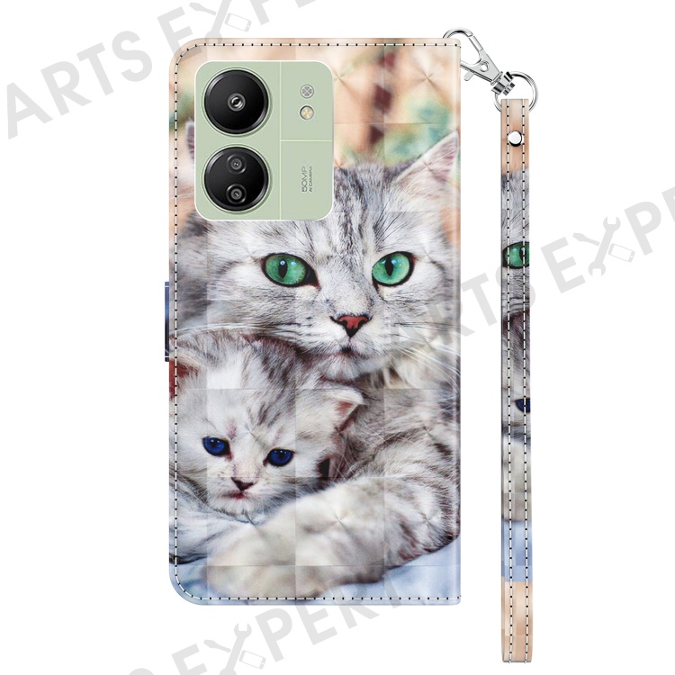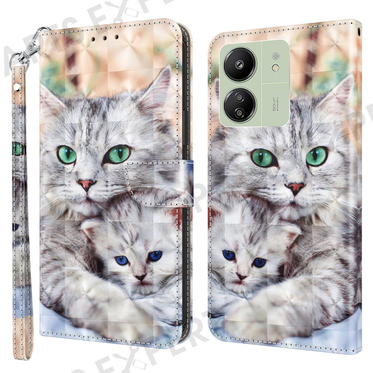 For Xiaomi Redmi 13C 4G / 13C 5G / Poco C65 4G / Poco M6 5G / 13R 5G Magnetic Phone Case 3D Pattern Printing Wallet Cover - Two Cats