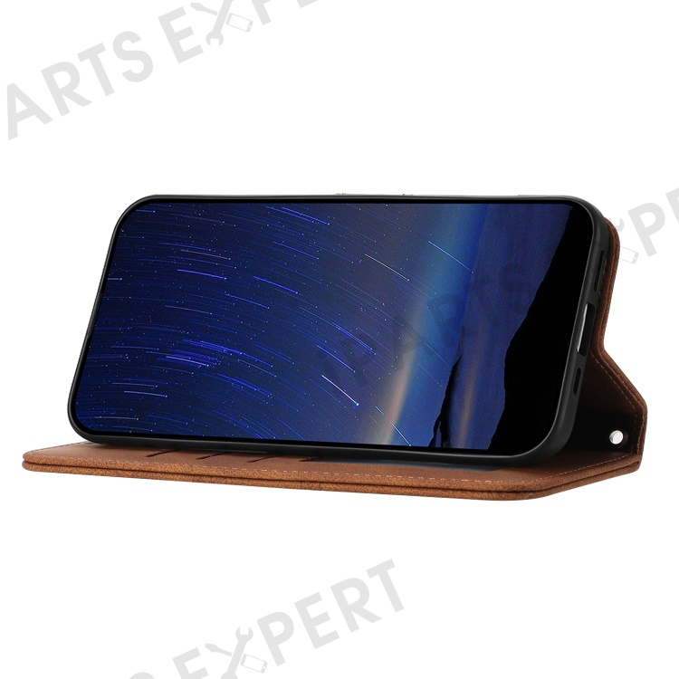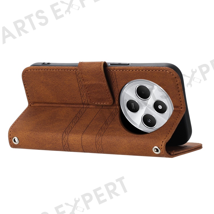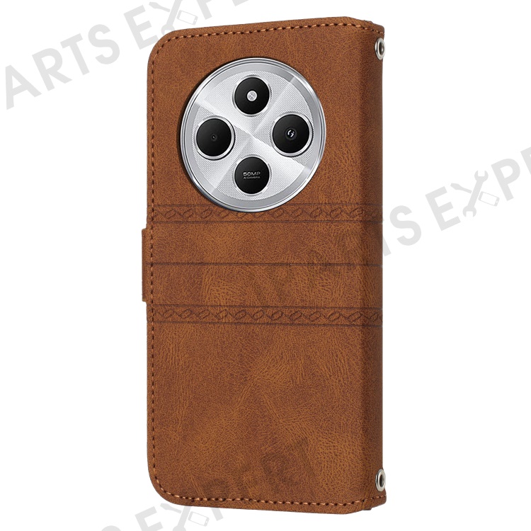 For Xiaomi Poco C75 4G / Redmi 14R 5G / 14C 4G Case Wallet PU Leather Imprinted Pattern Phone Cover - Brown