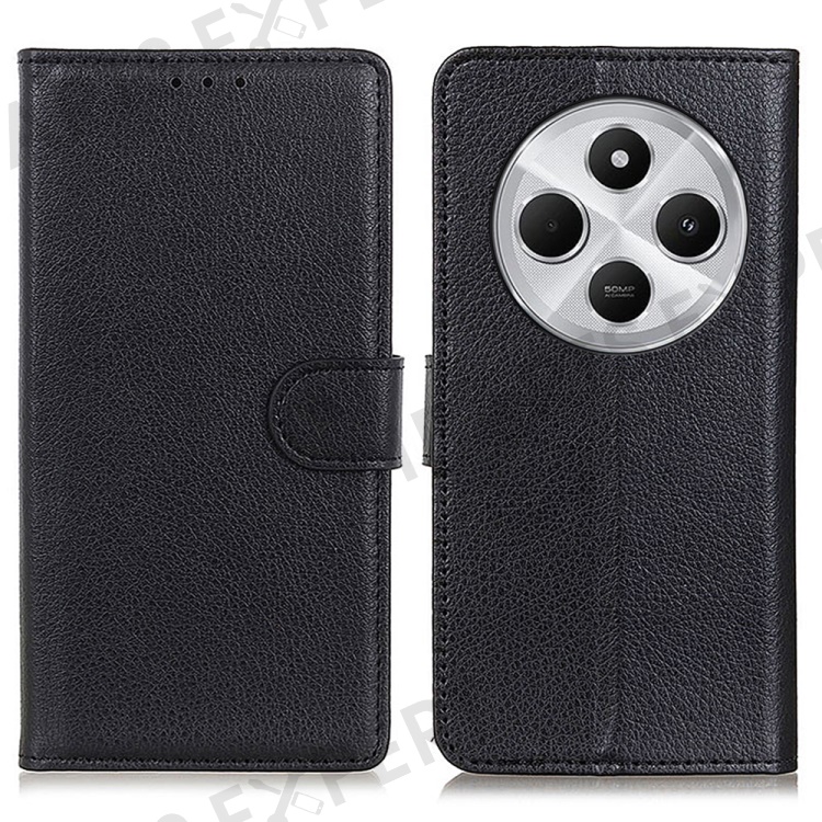 For Xiaomi Poco C75 4G / Redmi 14R 5G / 14C 4G Wallet Case PU Leather Phone Cover Litchi Texture - Black