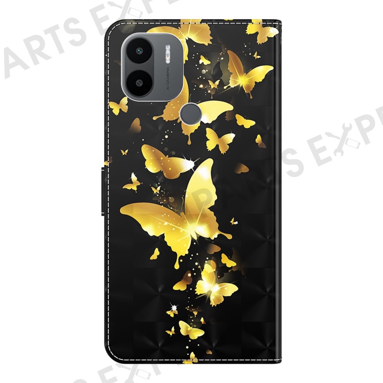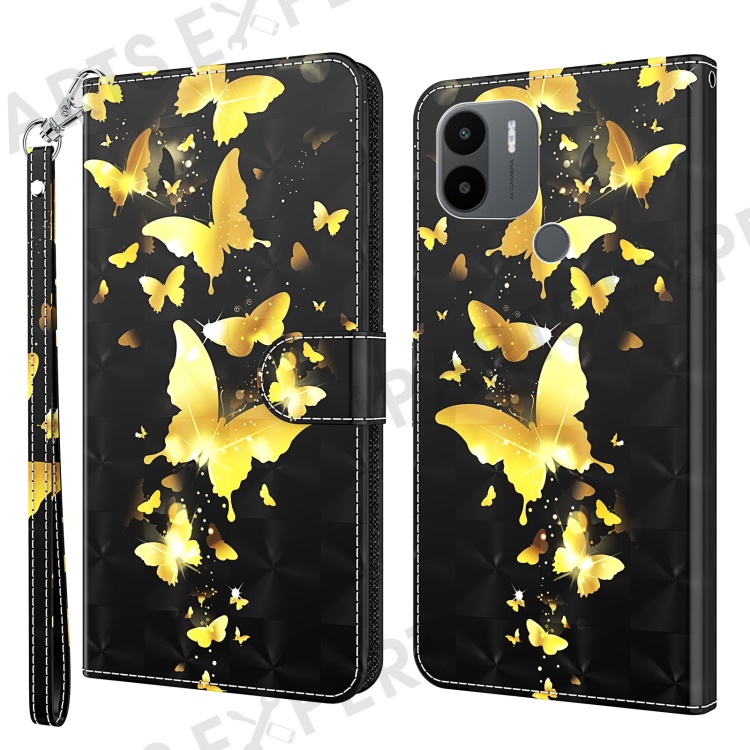 For Xiaomi Redmi A1 4G / A2 4G 3D Pattern Printing Wallet Phone Case PU Leather Wrist Strap Handbag Stand Feature Magnetic Flip Cover - Golden Butterflies