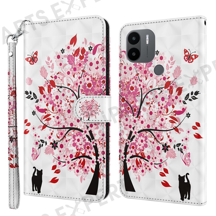For Xiaomi Redmi A1 4G / A2 4G 3D Pattern Printing Wallet Phone Case PU Leather Wrist Strap Handbag Stand Feature Magnetic Flip Cover - Wish Tree