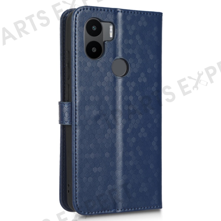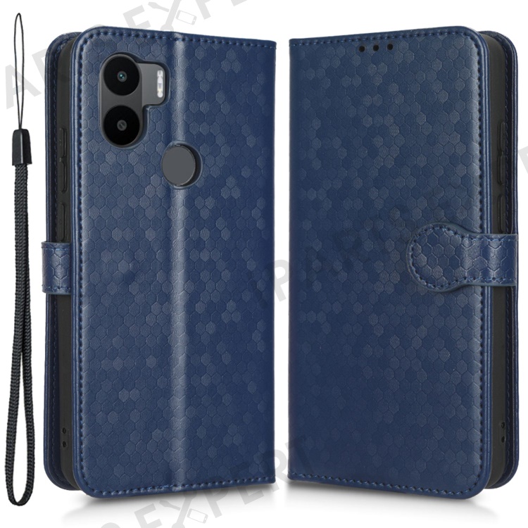 For Xiaomi Redmi A1+ 4G Dot Pattern Imprinted Wallet Case PU Leather Foldable Stand Phone Protective Cover with Strap - Dark Blue