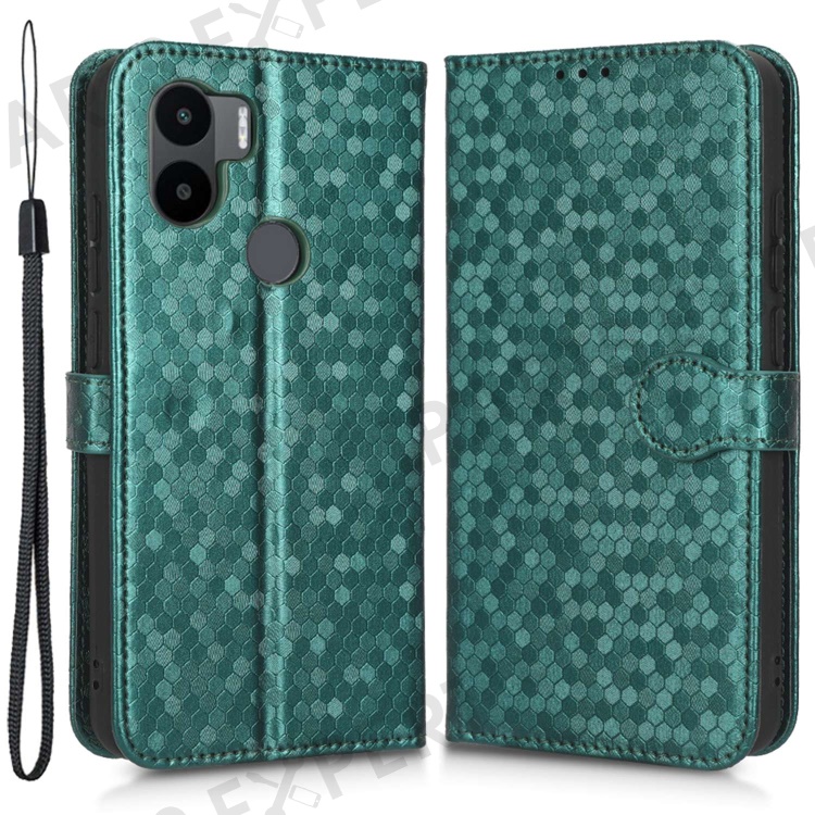 For Xiaomi Redmi A1+ 4G Dot Pattern Imprinted Wallet Case PU Leather Foldable Stand Phone Protective Cover with Strap - Green