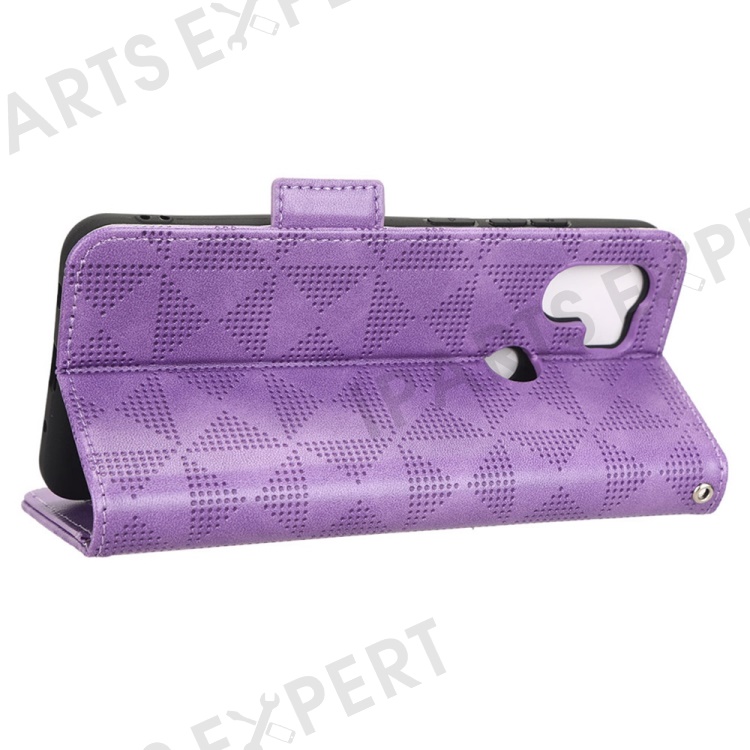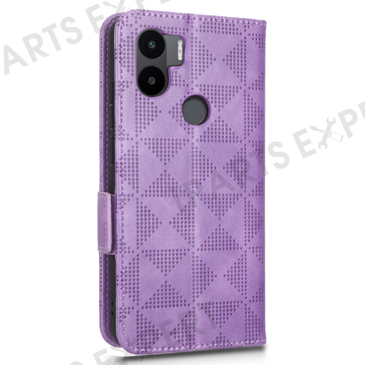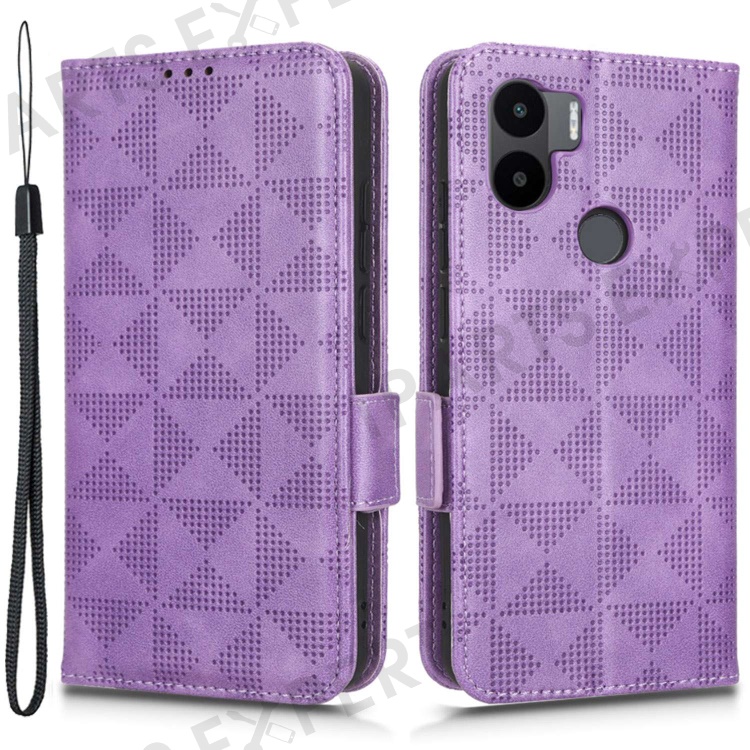 For Xiaomi Redmi A1+ 4G / A2+ 4G / Poco C50 4G Imprinted Triangle Pattern PU Leather Stand Case Full Protection Phone Wallet Cover with Hand Strap - Purple