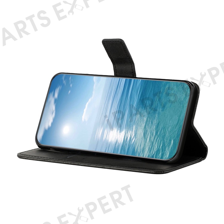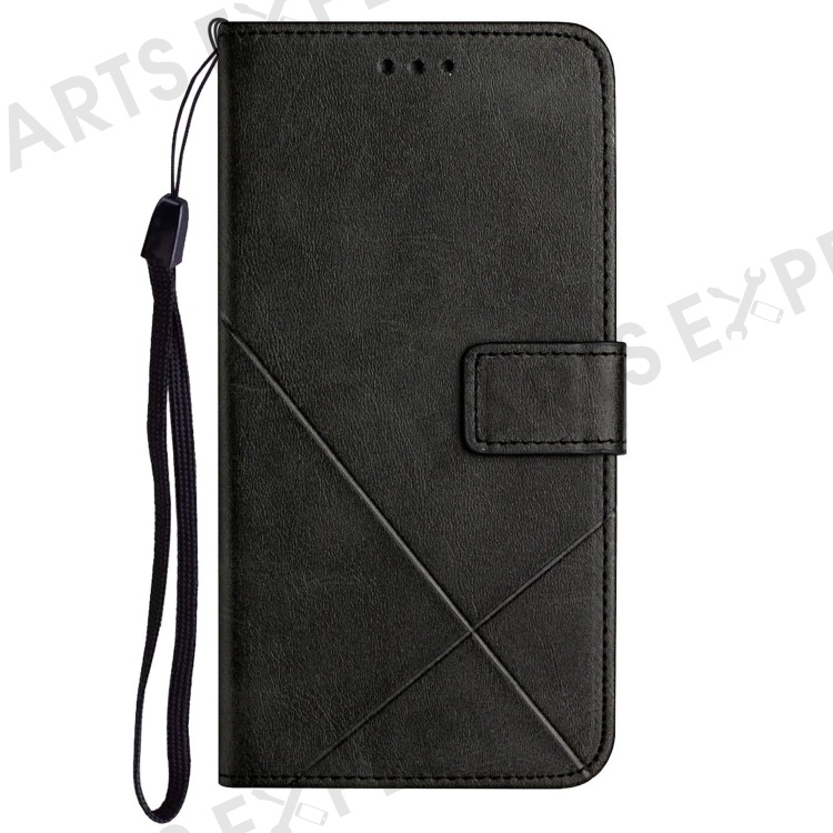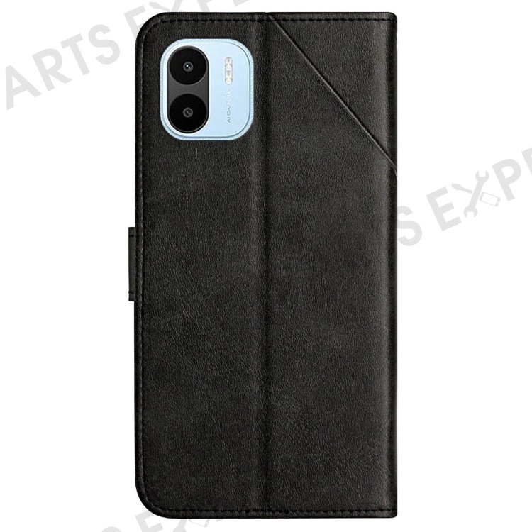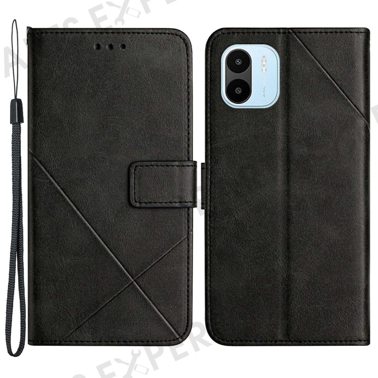 For Xiaomi Redmi A1 4G / A2 4G Line Imprinting Protective Phone Case Solid Color PU Leather Magnetic Clasp Wallet Stand Anti-scratch Cell Phone Cover with Strap - Black
