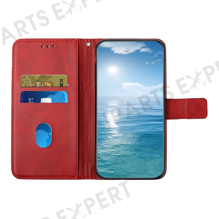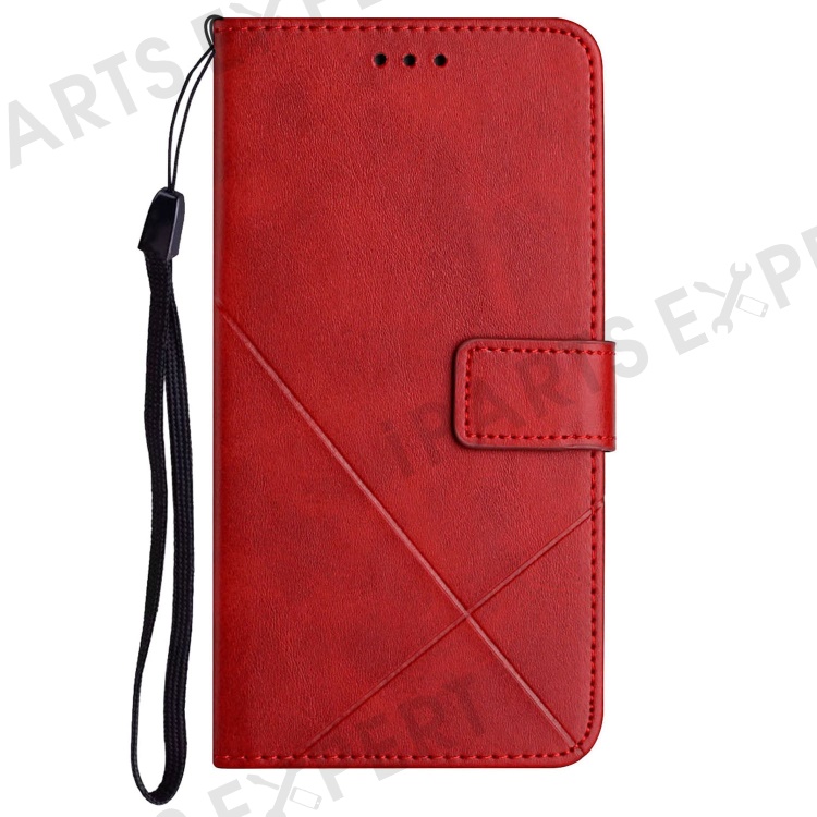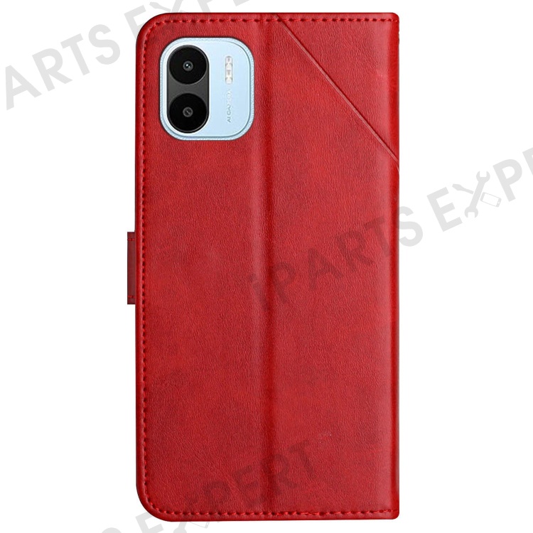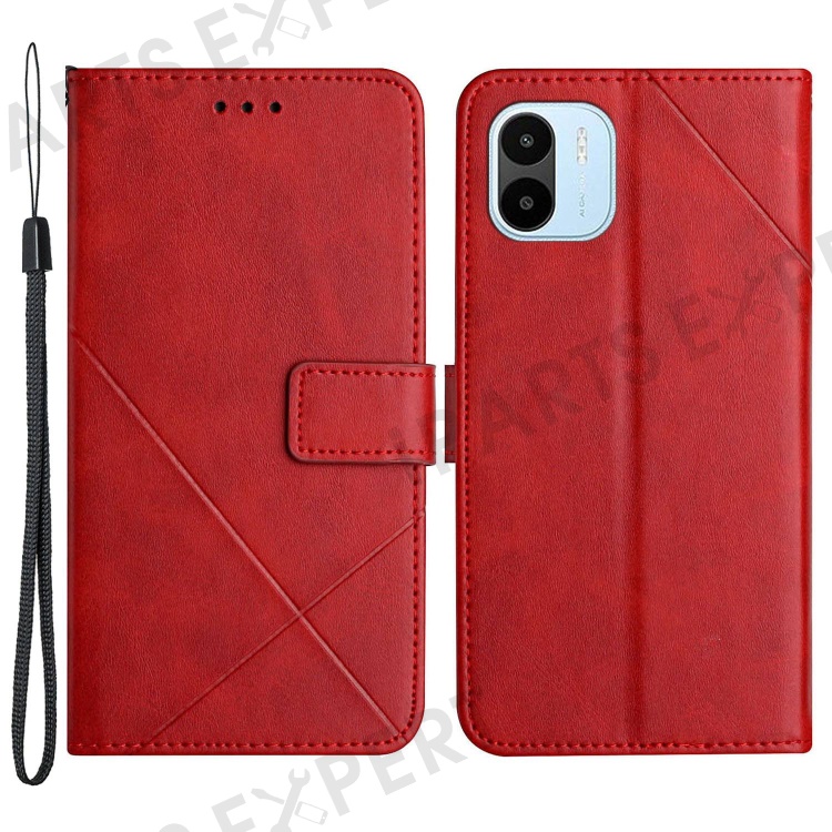 For Xiaomi Redmi A1 4G / A2 4G Line Imprinting Protective Phone Case Solid Color PU Leather Magnetic Clasp Wallet Stand Anti-scratch Cell Phone Cover with Strap - Red