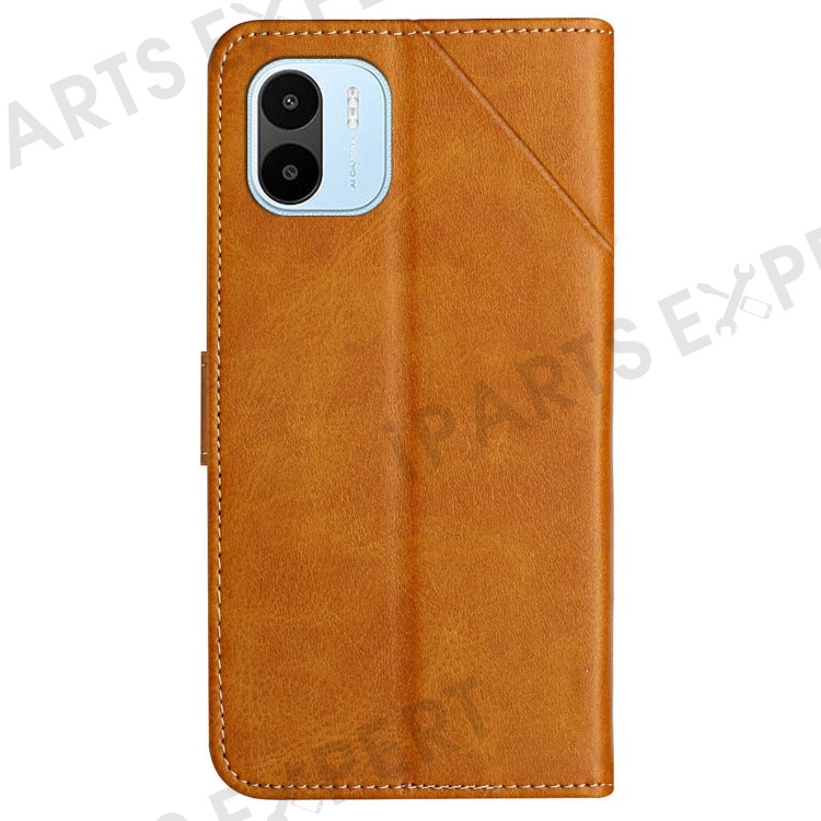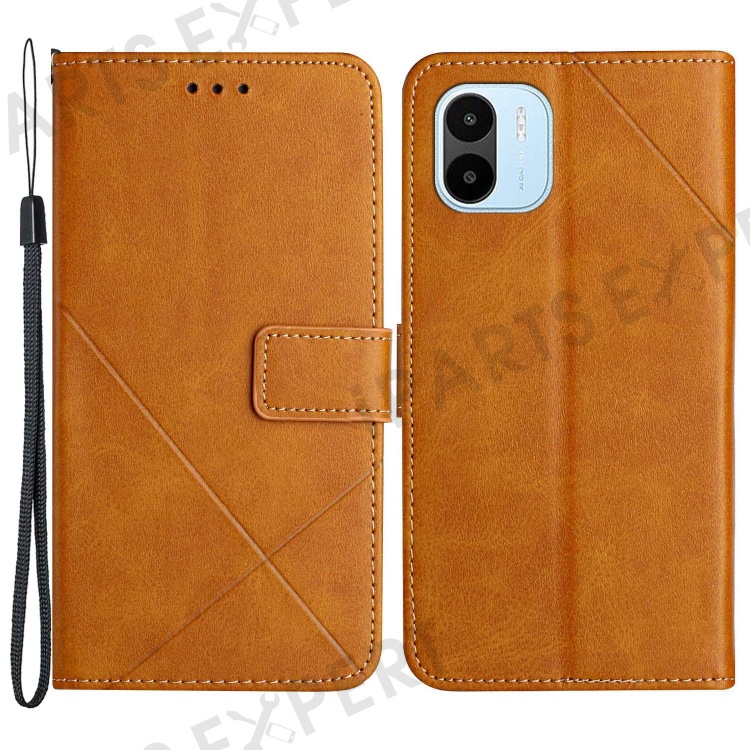 For Xiaomi Redmi A1 4G / A2 4G Line Imprinting Protective Phone Case Solid Color PU Leather Magnetic Clasp Wallet Stand Anti-scratch Cell Phone Cover with Strap - Yellow