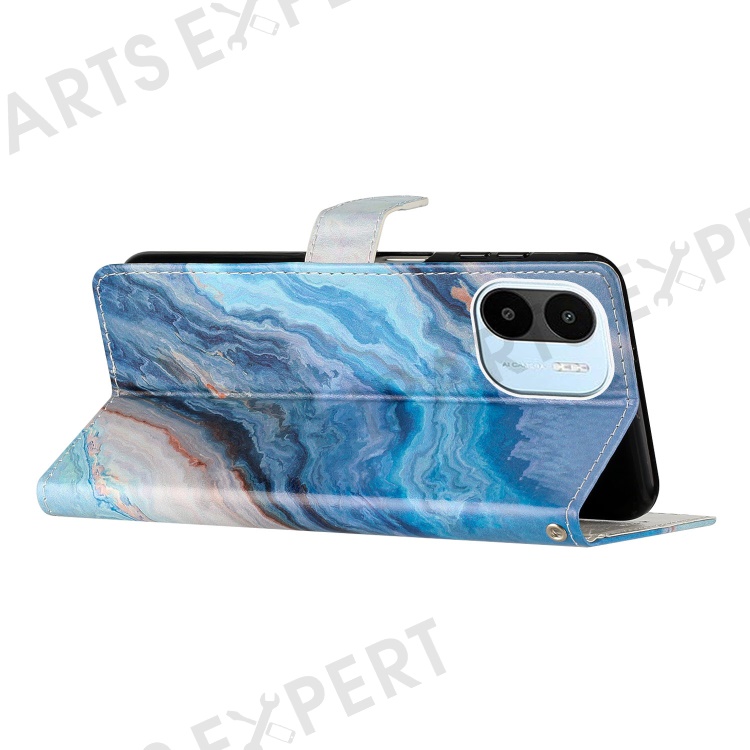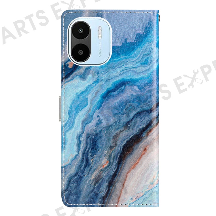 For Xiaomi Redmi A1 4G / A2 4G Pattern Printing PU Leather Phone Case Stand Drop-proof Magnetic Flip Wallet Cover with Strap - Blue Marble