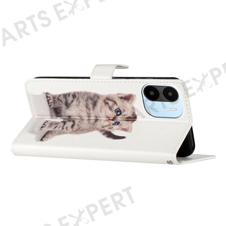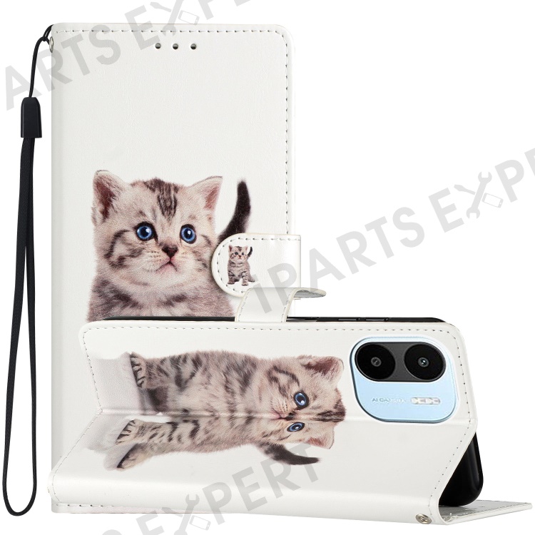 For Xiaomi Redmi A1 4G / A2 4G Pattern Printing PU Leather Phone Case Stand Drop-proof Magnetic Flip Wallet Cover with Strap - Cute Cat