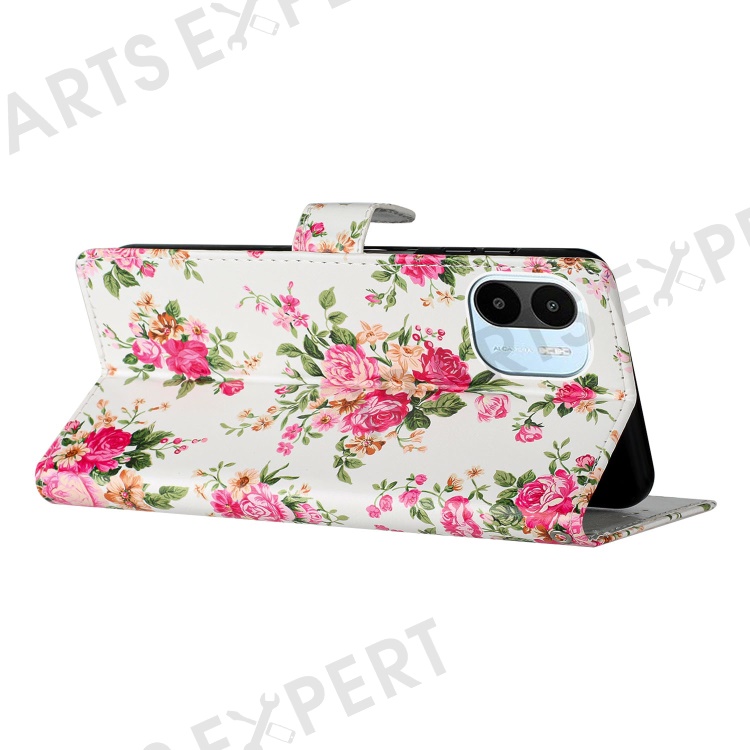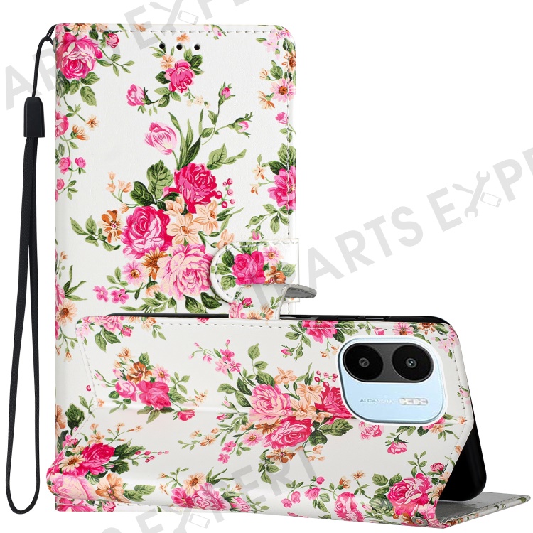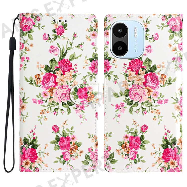 For Xiaomi Redmi A1 4G / A2 4G Pattern Printing PU Leather Phone Case Stand Drop-proof Magnetic Flip Wallet Cover with Strap - Red Flowers