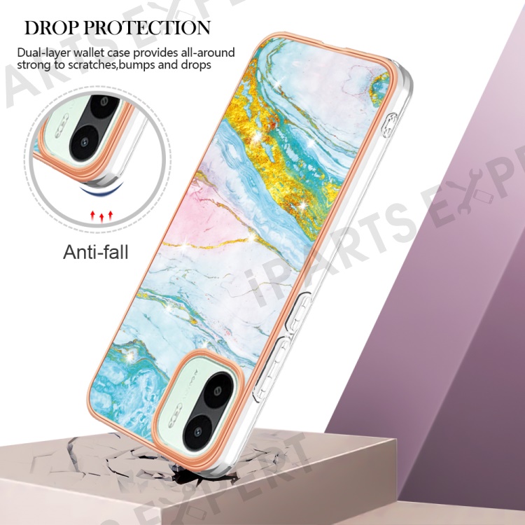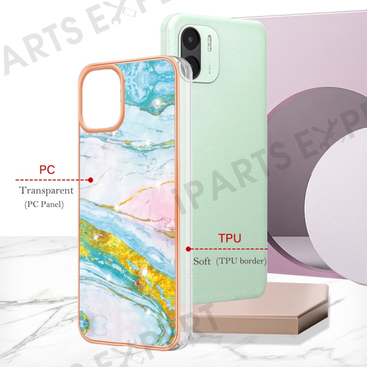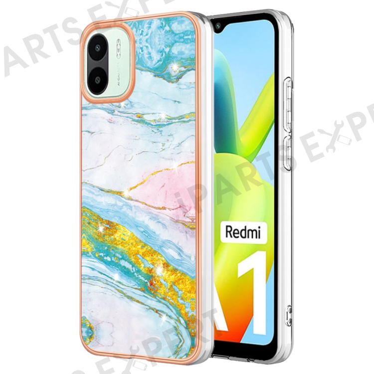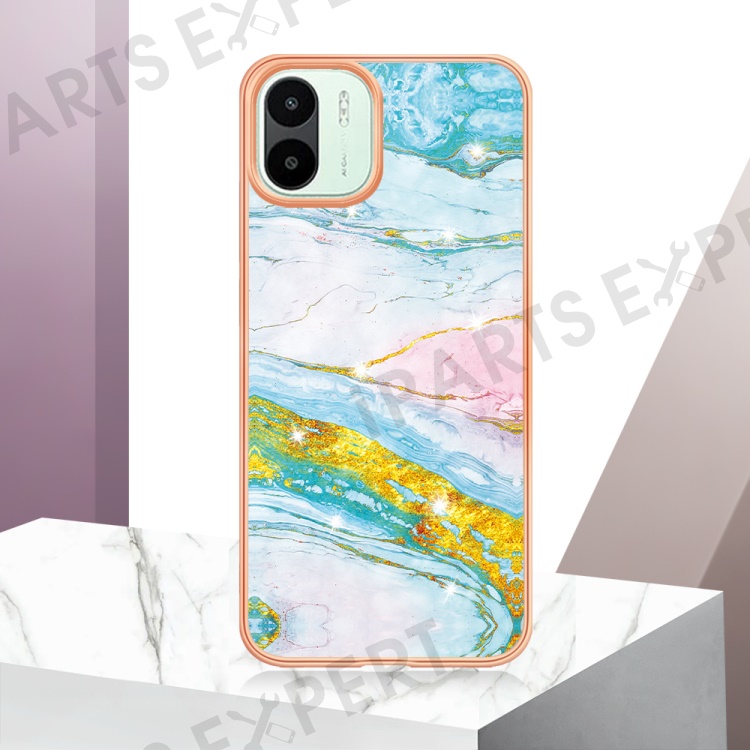 For Xiaomi Redmi A1 4G / A2 4G TPU Case with IMD Marble Pattern Electroplated Back Cover - Green 004