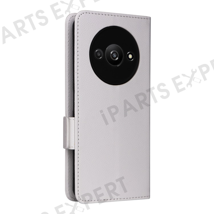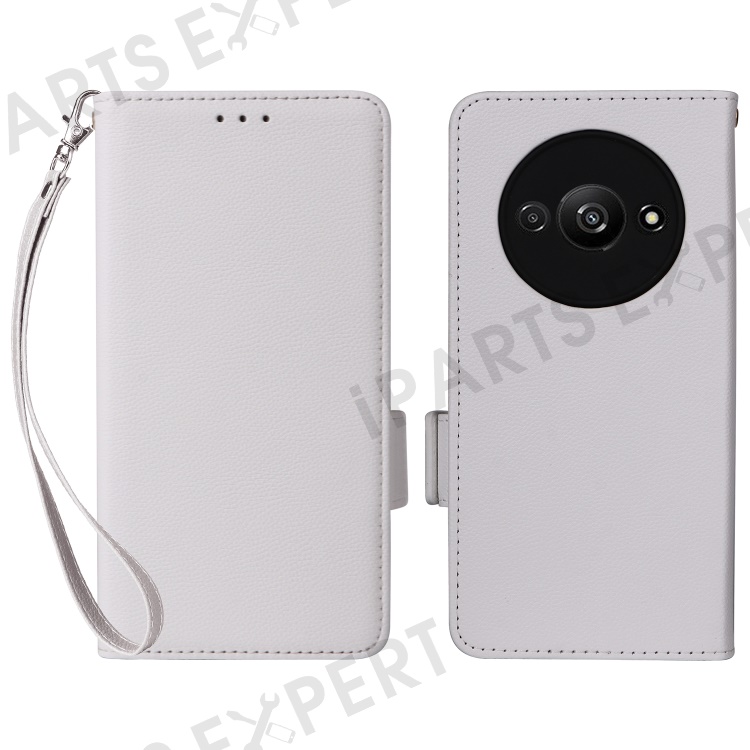 For Xiaomi Redmi A3 4G / Poco C61 4G Case with Wrist Strap Litchi Texture PU Leather Wallet Phone Cover - White