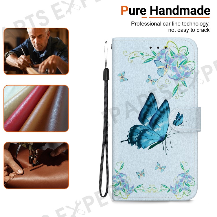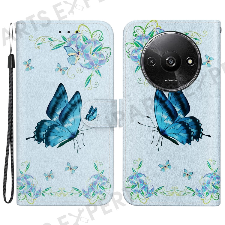 For Xiaomi Redmi A3 / Poco C61 4G Magnetic Case Wallet Design Pattern Printing Phone Cover - Blue Butterfly Flower
