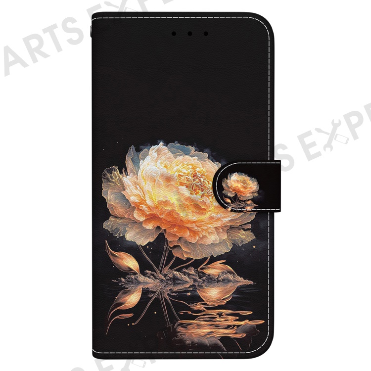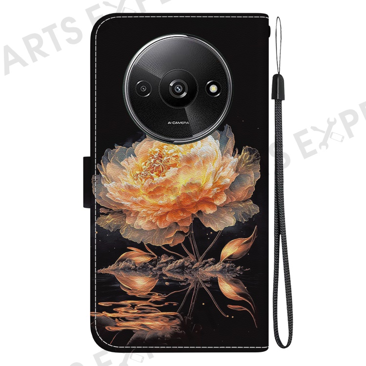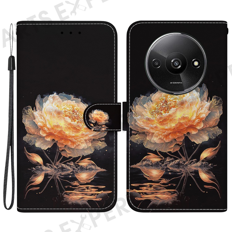 For Xiaomi Redmi A3 / Poco C61 4G Magnetic Case Wallet Design Pattern Printing Phone Cover - Gold Peony