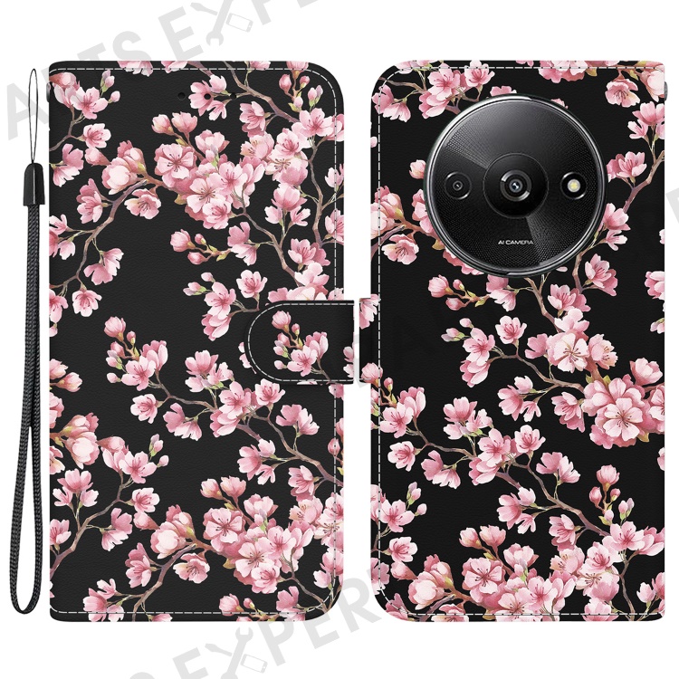 For Xiaomi Redmi A3 / Poco C61 4G Magnetic Case Wallet Design Pattern Printing Phone Cover - Plum Blossom