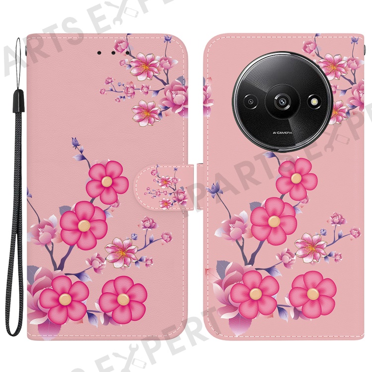 For Xiaomi Redmi A3 / Poco C61 4G Magnetic Case Wallet Design Pattern Printing Phone Cover - Sakura