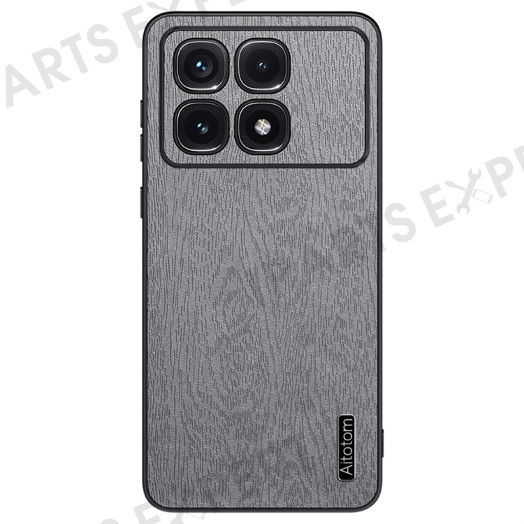 For Xiaomi Redmi K70 Ultra Case Wood Texture PU+PC+TPU Back Phone Cover - Grey