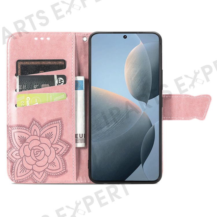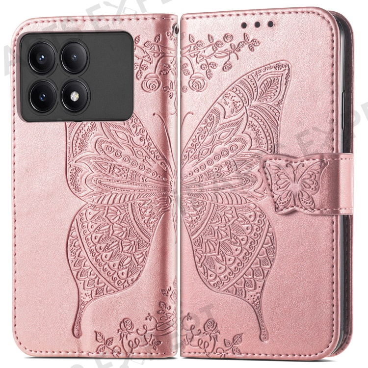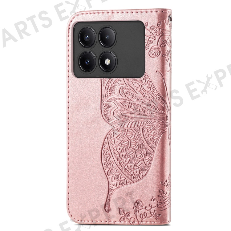 For Xiaomi Redmi K70E 5G / Poco X6 Pro 5G Phone Case Butterfly Pattern Folio Stand View Cover - Rose Gold