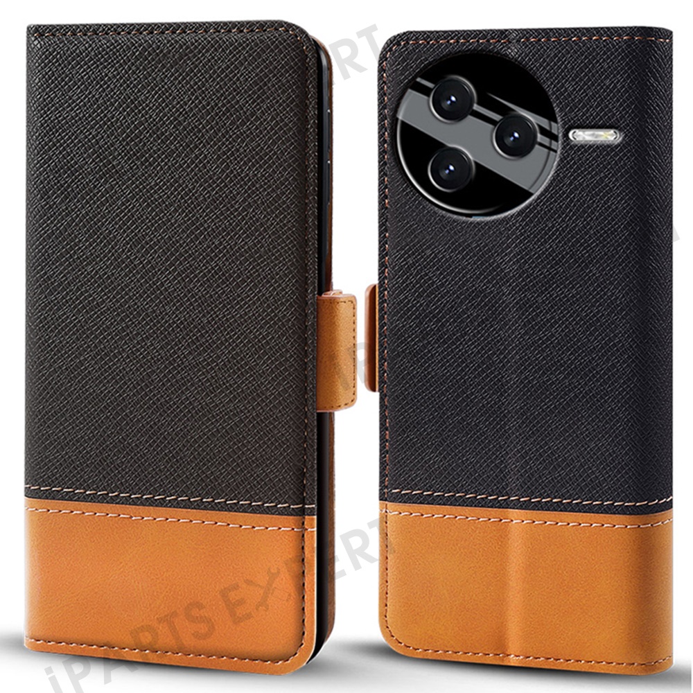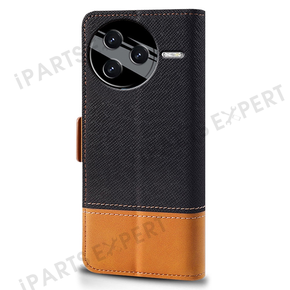 For Xiaomi Poco F7 Pro 5G / Redmi K80 5G Case Color Splicing PU Leather Wallet Phone Cover - Black