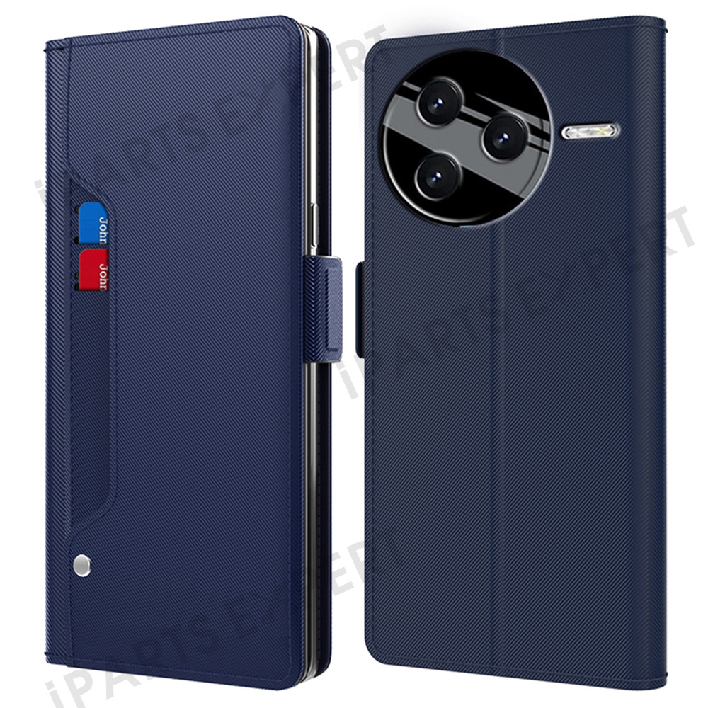 For Xiaomi Poco F7 Pro 5G / Redmi K80 5G Case Stand PU Leather Phone Cover Card Holder Mirror - Blue