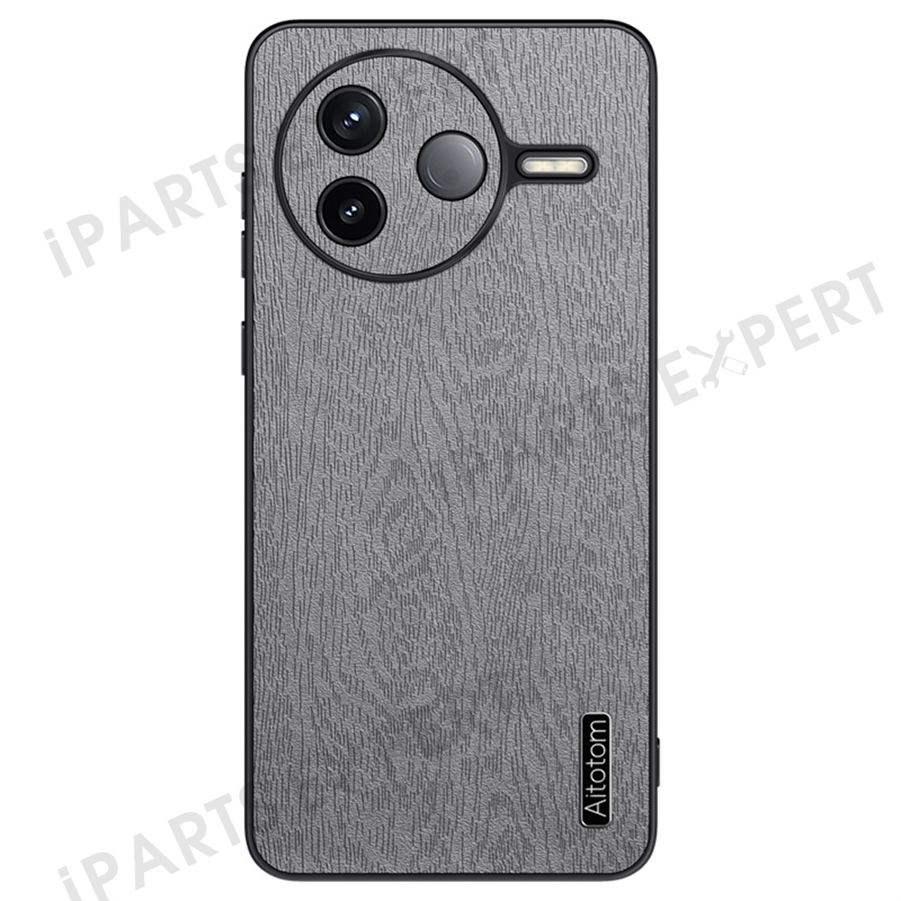 For Xiaomi Poco F7 Pro 5G / Redmi K80 5G Case Wood Texture PU Leather Coated PC TPU Phone Cover - Grey