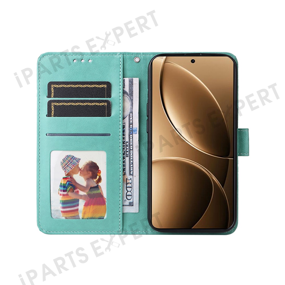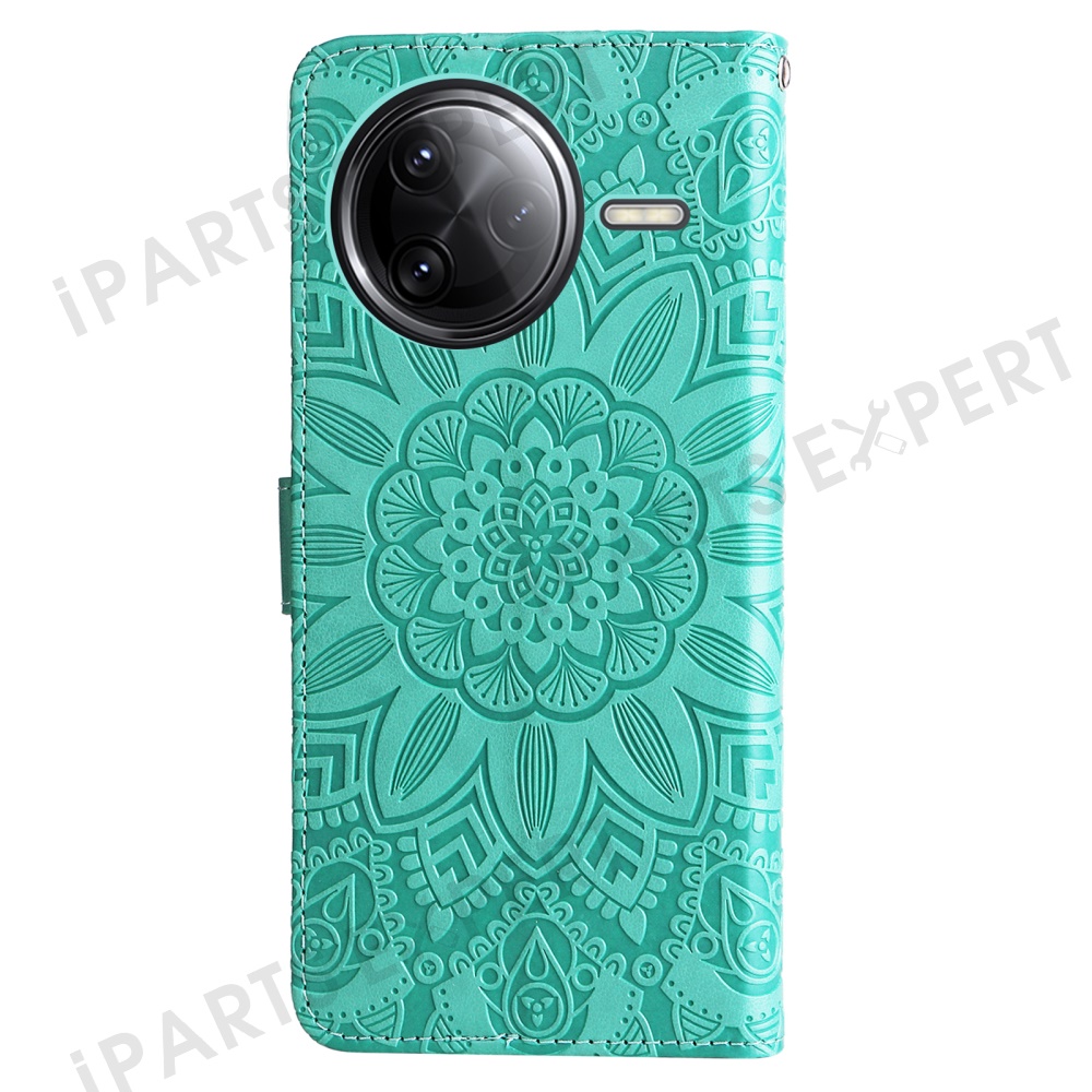 For Xiaomi Poco F7 Ultra 5G / Redmi K80 Pro 5G Case Sunflower Imprint Leather Wallet Phone Cover - Green