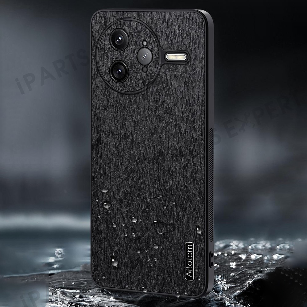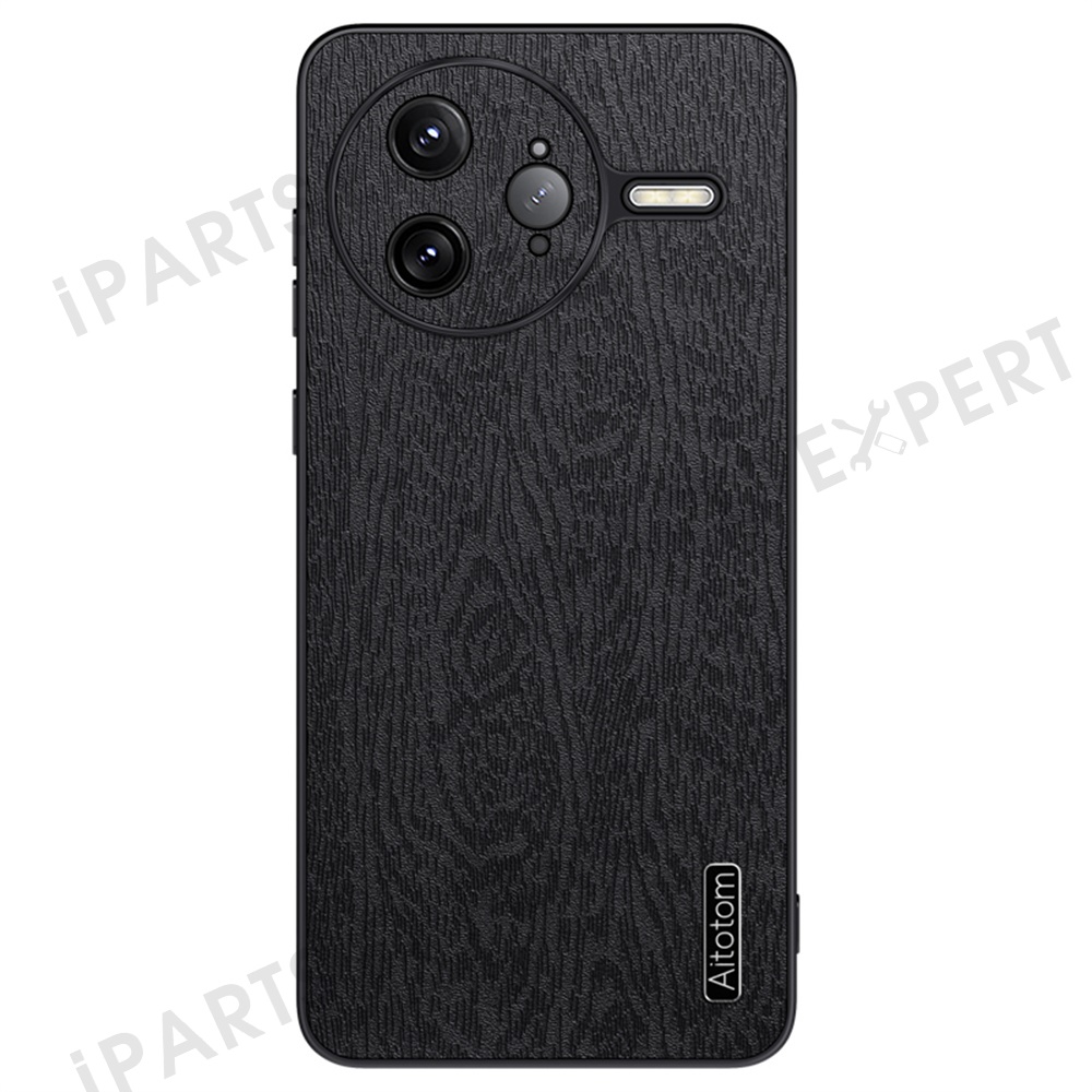 For Xiaomi Poco F7 Ultra 5G / Redmi K80 Pro 5G Case Wood Texture PU Leather Coated PC TPU Phone Cover - Black