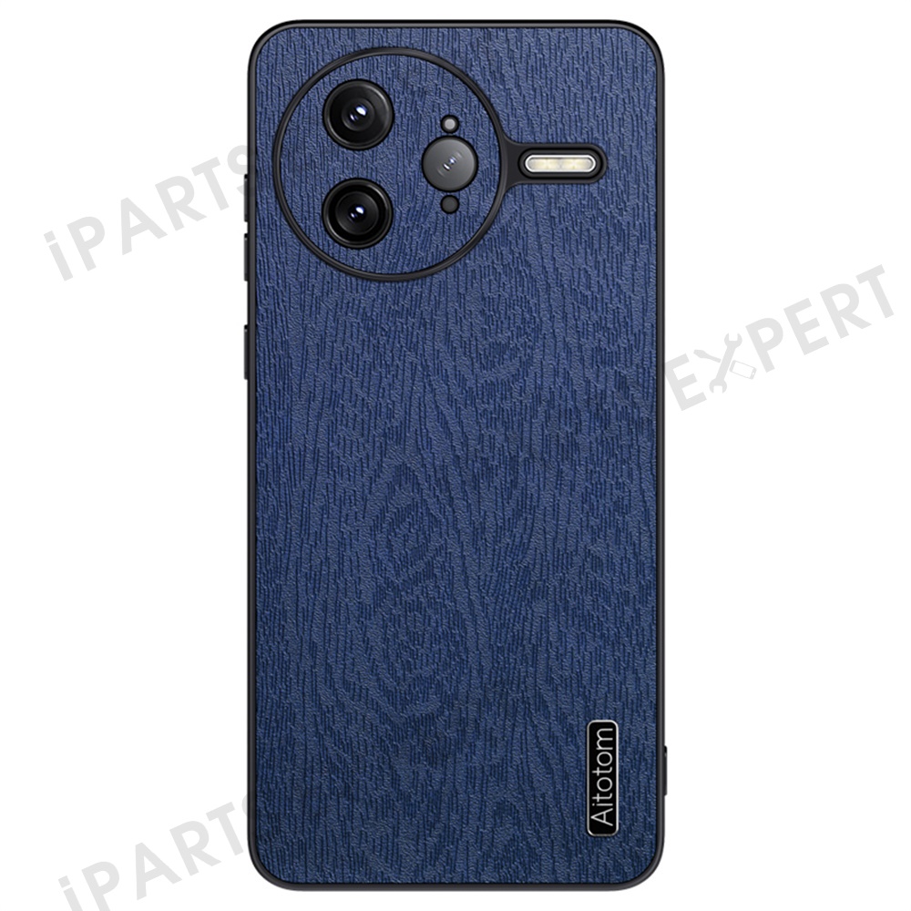 For Xiaomi Poco F7 Ultra 5G / Redmi K80 Pro 5G Case Wood Texture PU Leather Coated PC TPU Phone Cover - Blue