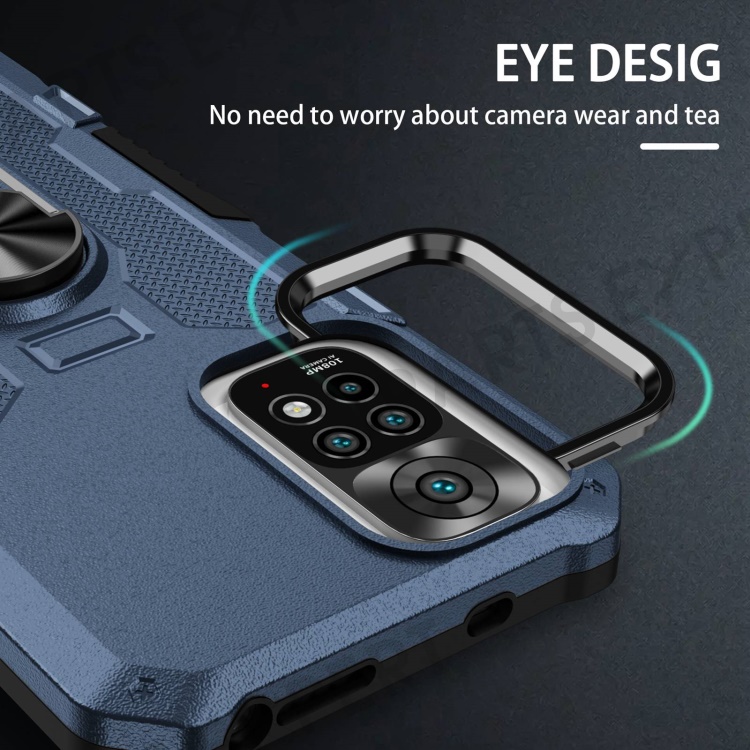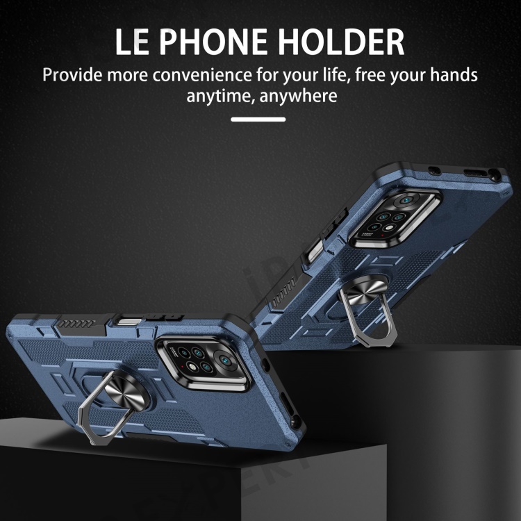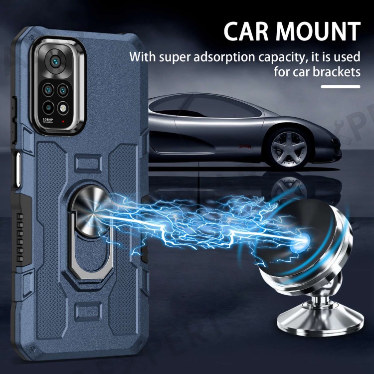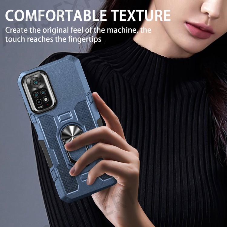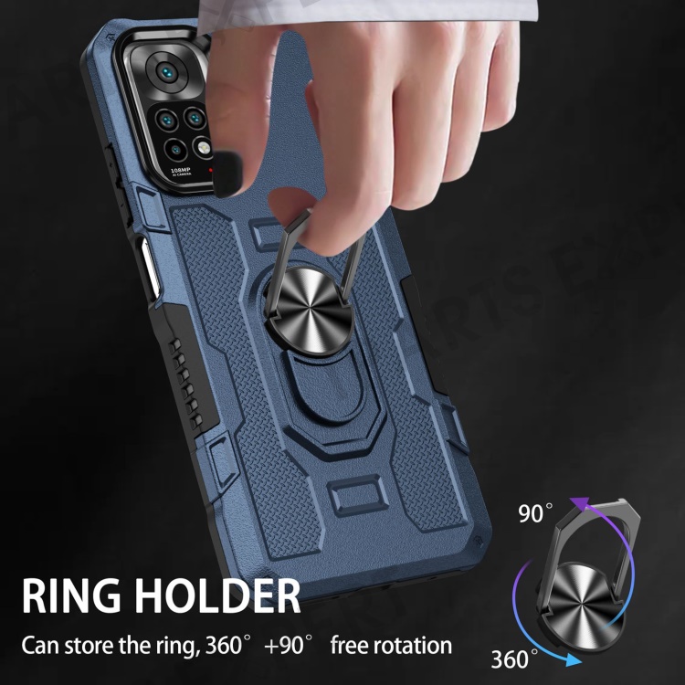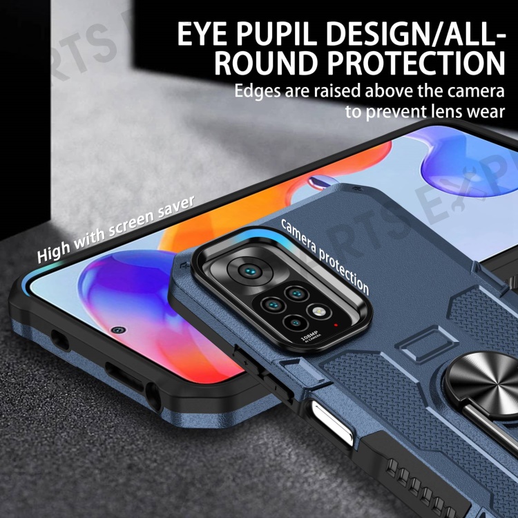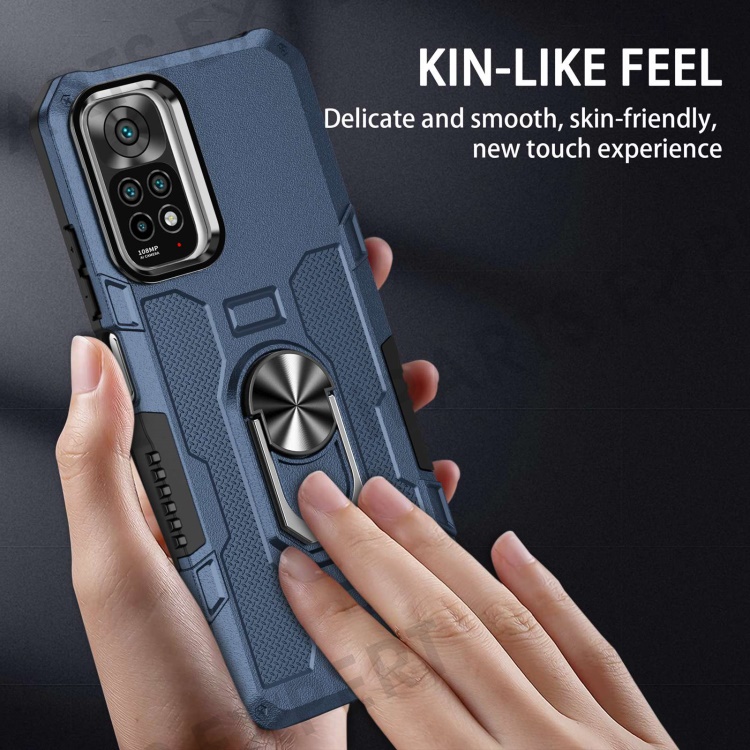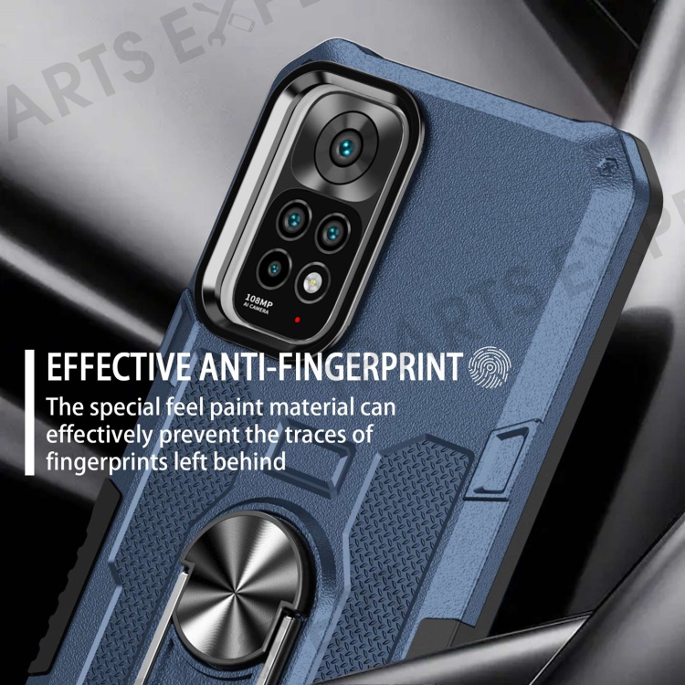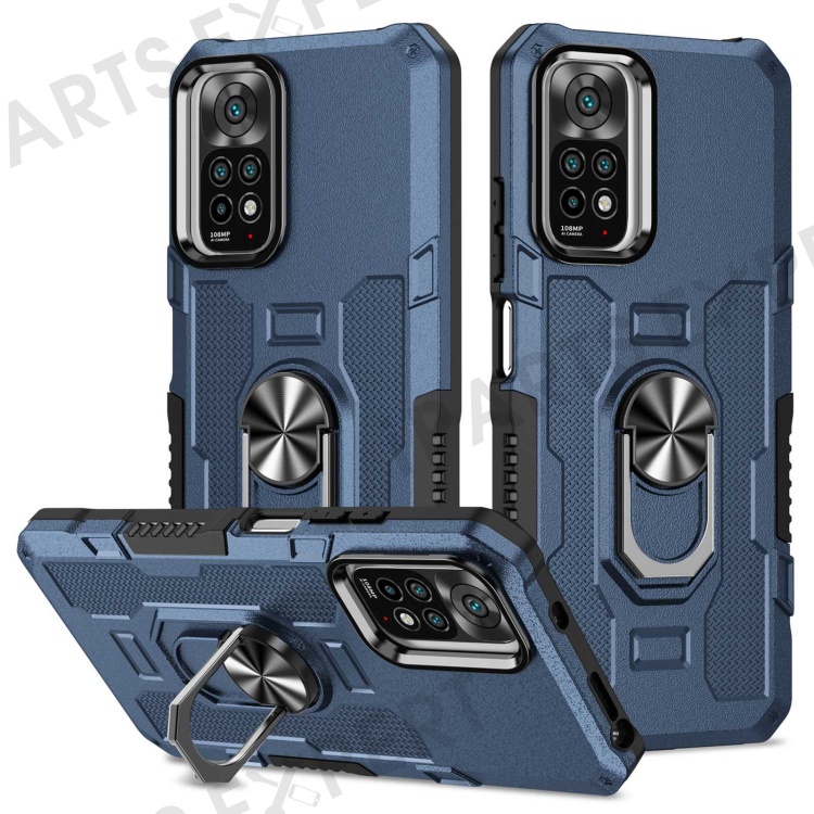 For Xiaomi Redmi Note 11 4G (Qualcomm) / Note 11S 4G Shockproof Skin-friendly PC + TPU Phone Cover Kickstand with Ring Holder Built-in Metal Sheet - Blue