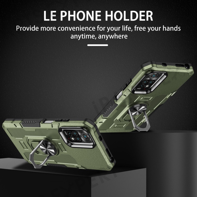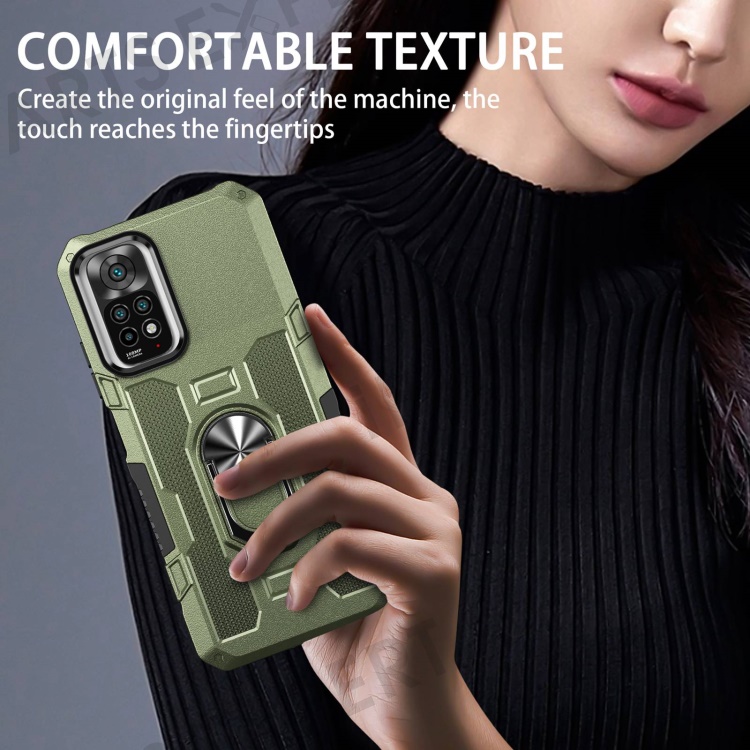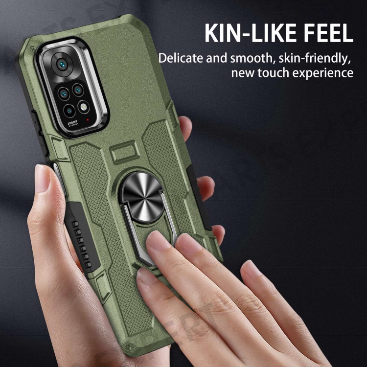 For Xiaomi Redmi Note 11 4G (Qualcomm) / Note 11S 4G Shockproof Skin-friendly PC + TPU Phone Cover Kickstand with Ring Holder Built-in Metal Sheet - Green