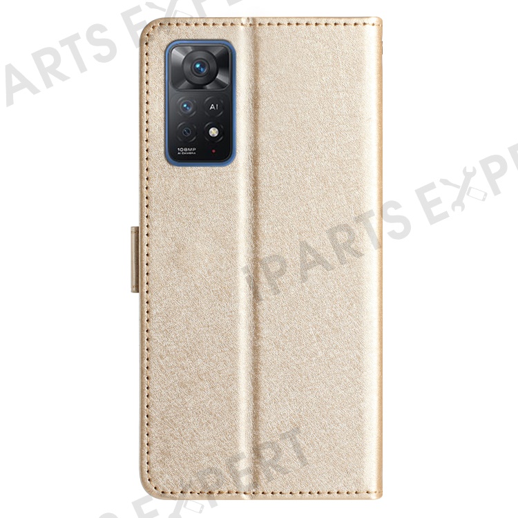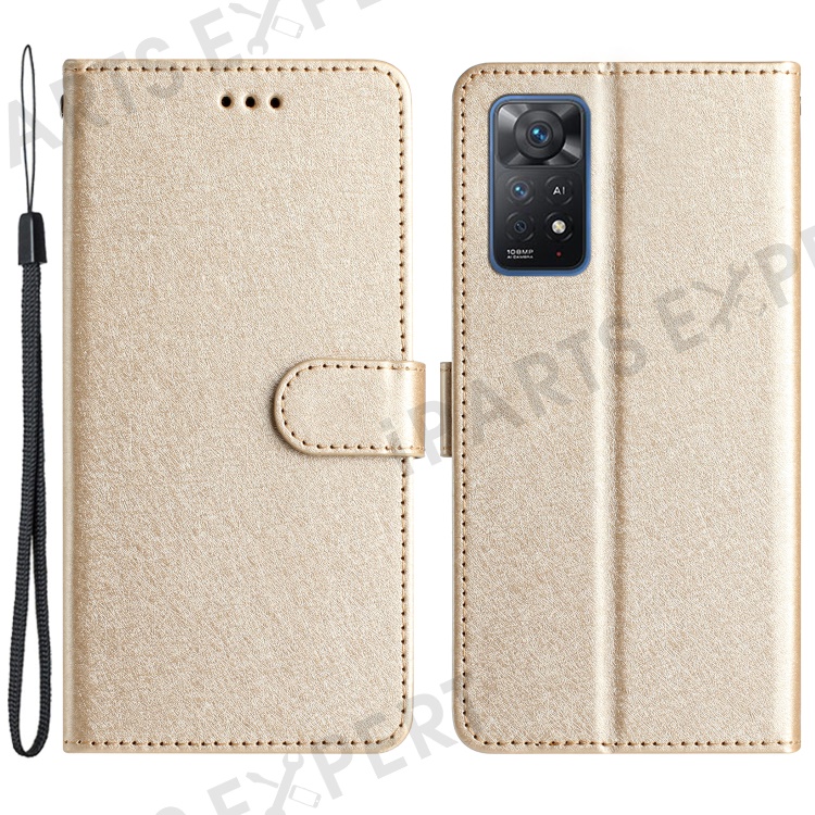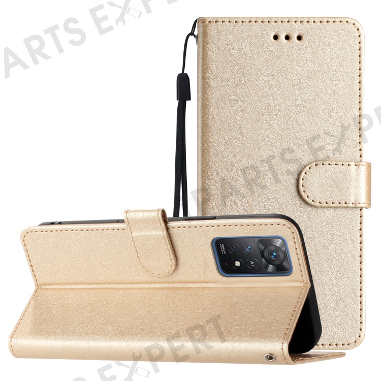 For Xiaomi Redmi Note 11 Pro 5G (Qualcomm) / 11 Pro 4G (MediaTek) / Note 12 Pro 4G Leather Phone Wallet Stand Silk Texture Flip Case - Gold