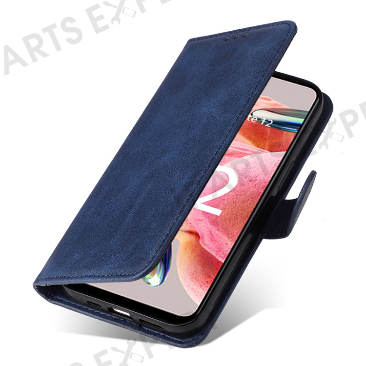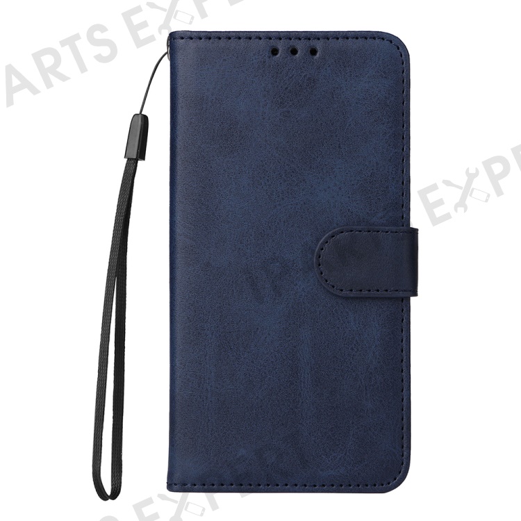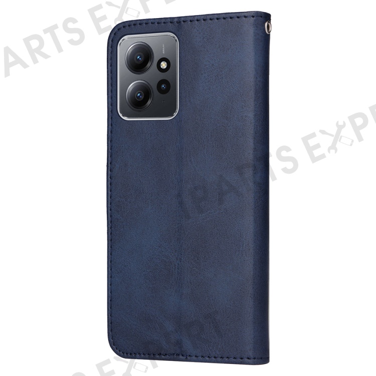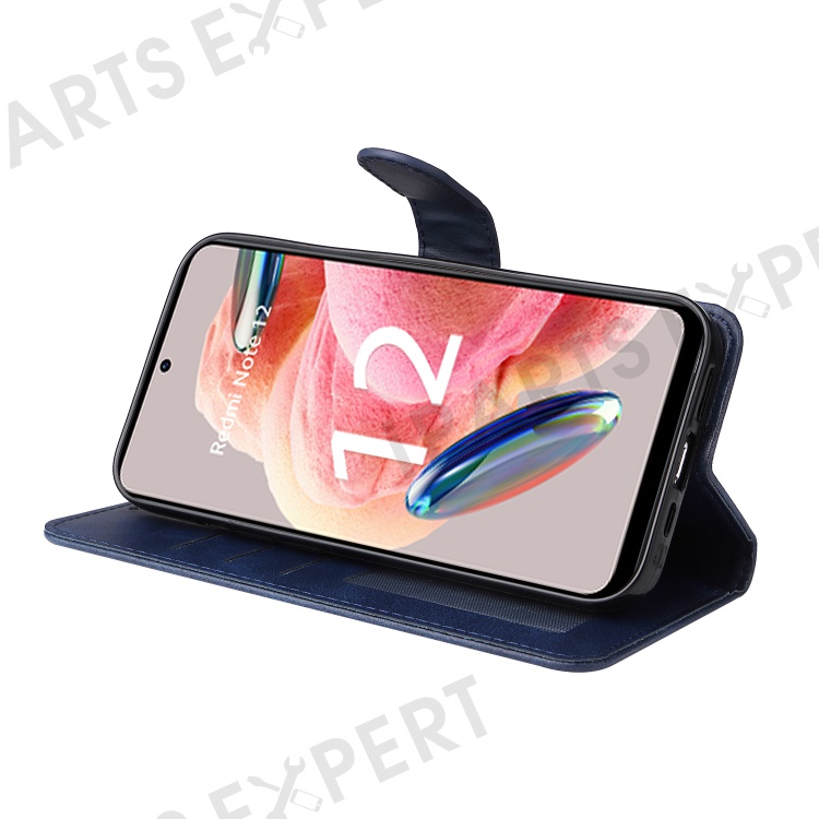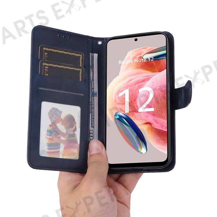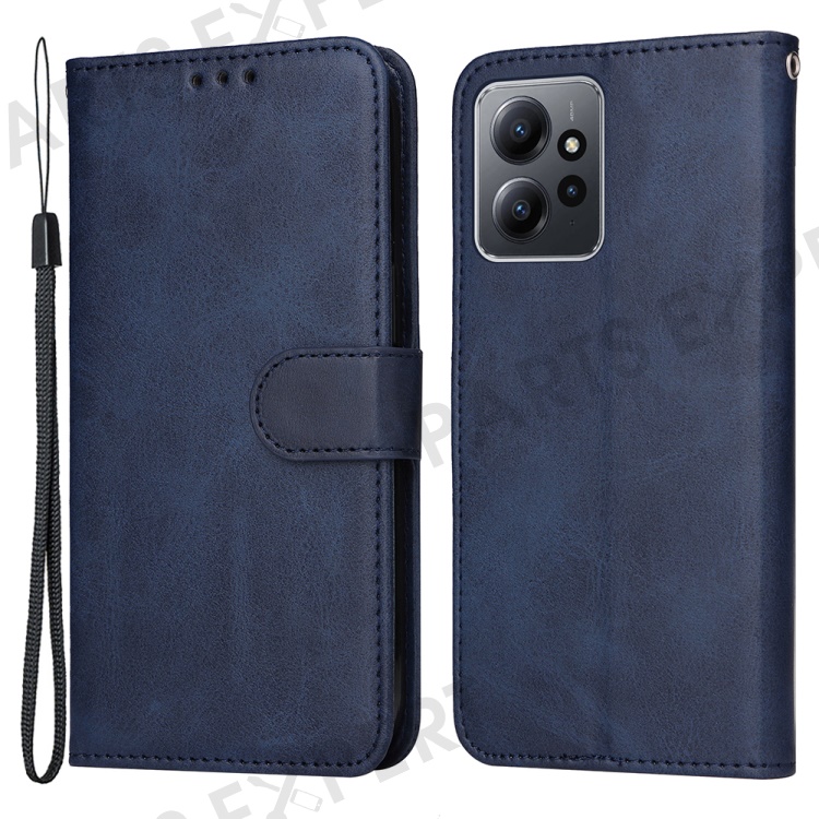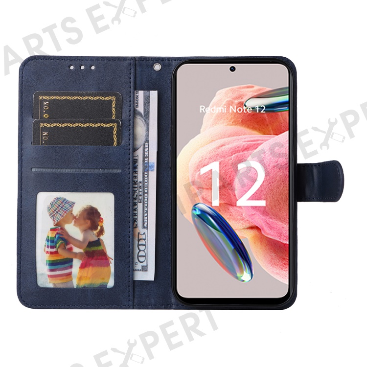 For Xiaomi Redmi Note 12 4G Calf Texture Leather Phone Case Stand Wallet Phone Cover with Strap - Blue