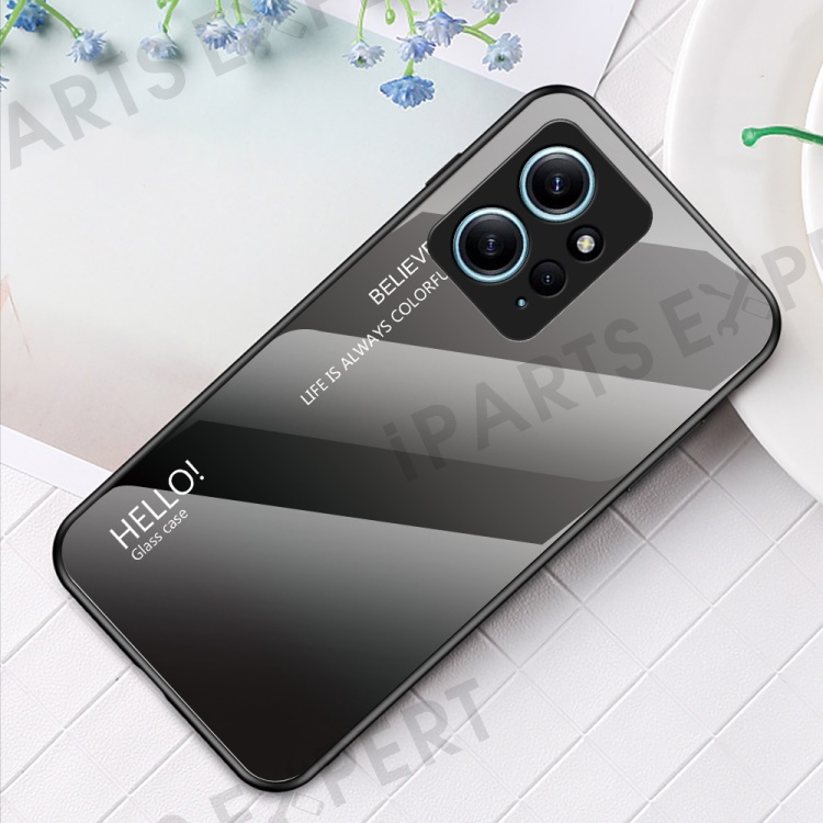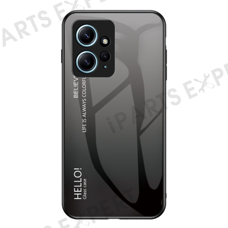 For Xiaomi Redmi Note 12 4G Phone Case Tempered Glass+PC+TPU Gradient Cell Phone Cover - Gradient Black Grey