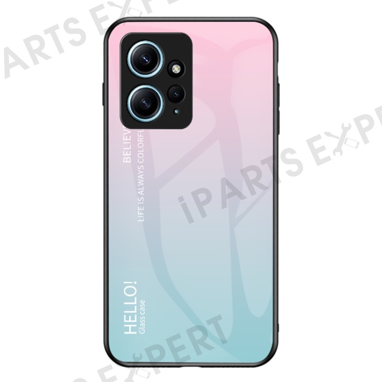 For Xiaomi Redmi Note 12 4G Phone Case Tempered Glass+PC+TPU Gradient Cell Phone Cover - Gradient Pink Blue
