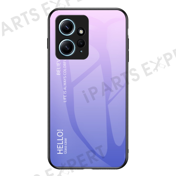 For Xiaomi Redmi Note 12 4G Phone Case Tempered Glass+PC+TPU Gradient Cell Phone Cover - Gradient Pink Purple
