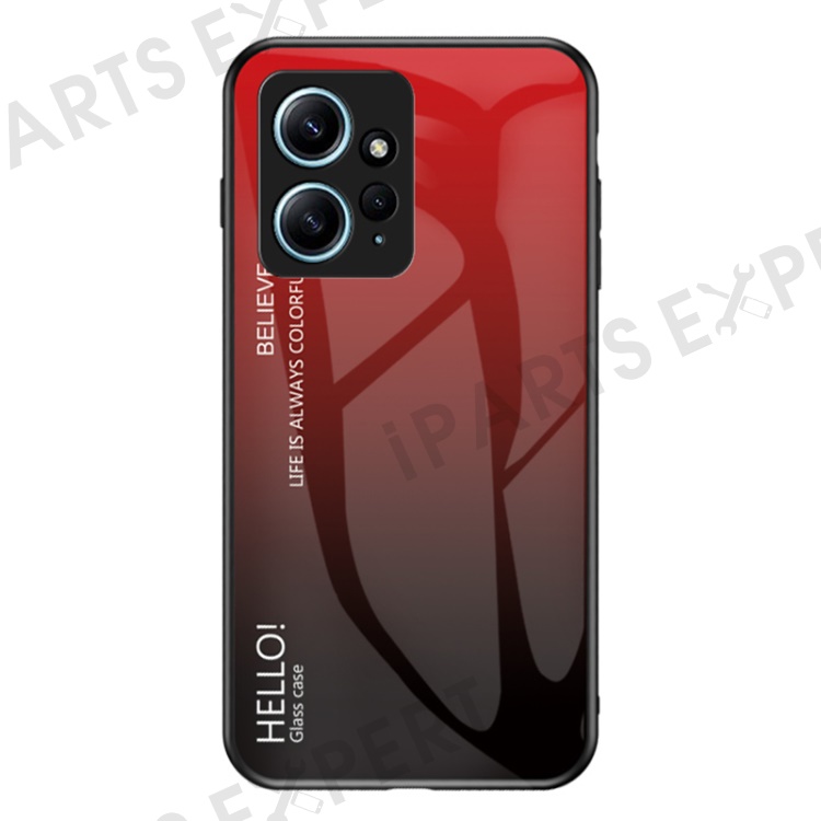 For Xiaomi Redmi Note 12 4G Phone Case Tempered Glass+PC+TPU Gradient Cell Phone Cover - Gradient Red Black