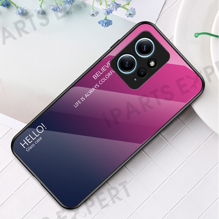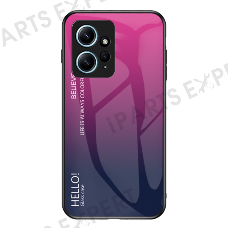 For Xiaomi Redmi Note 12 4G Phone Case Tempered Glass+PC+TPU Gradient Cell Phone Cover - Gradient Rose