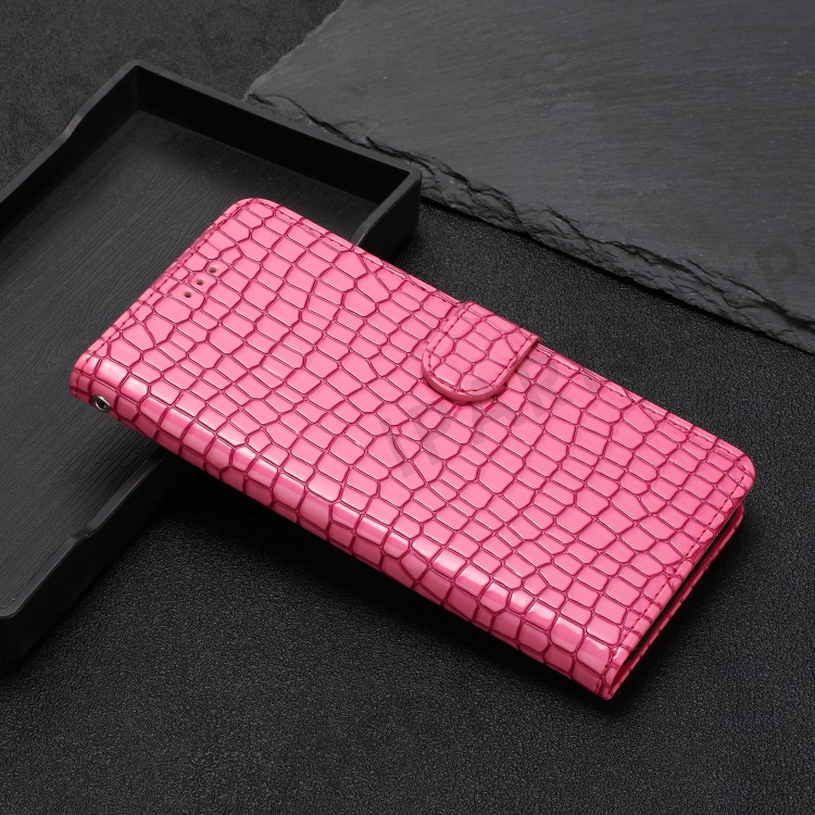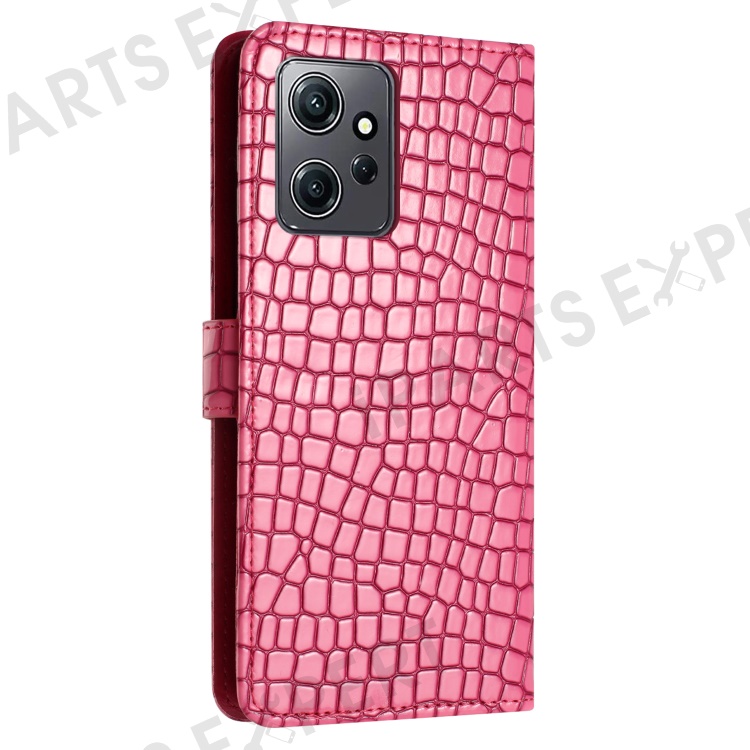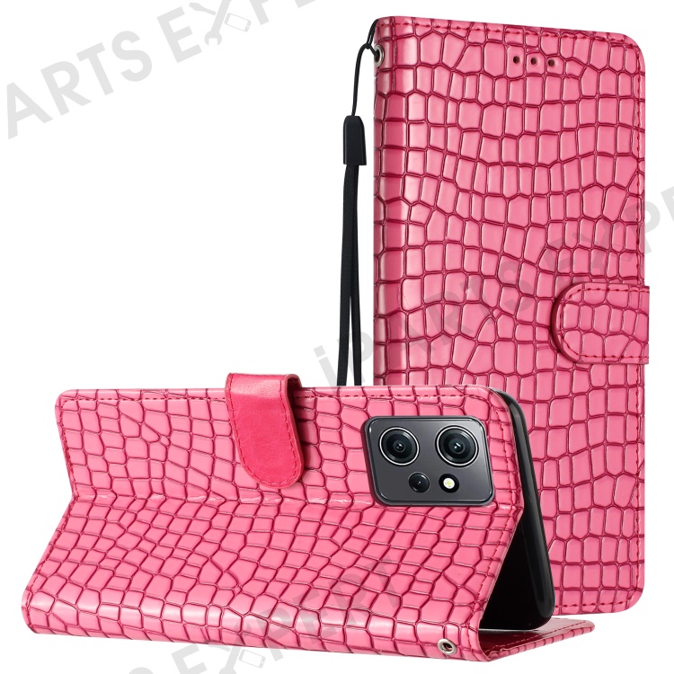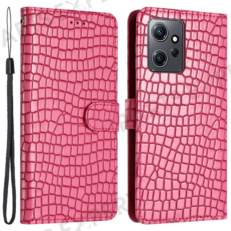 For Xiaomi Redmi Note 12 4G Stand Wallet Leather Cover Crocodile Texture Phone Case with Hand Strap - Rose