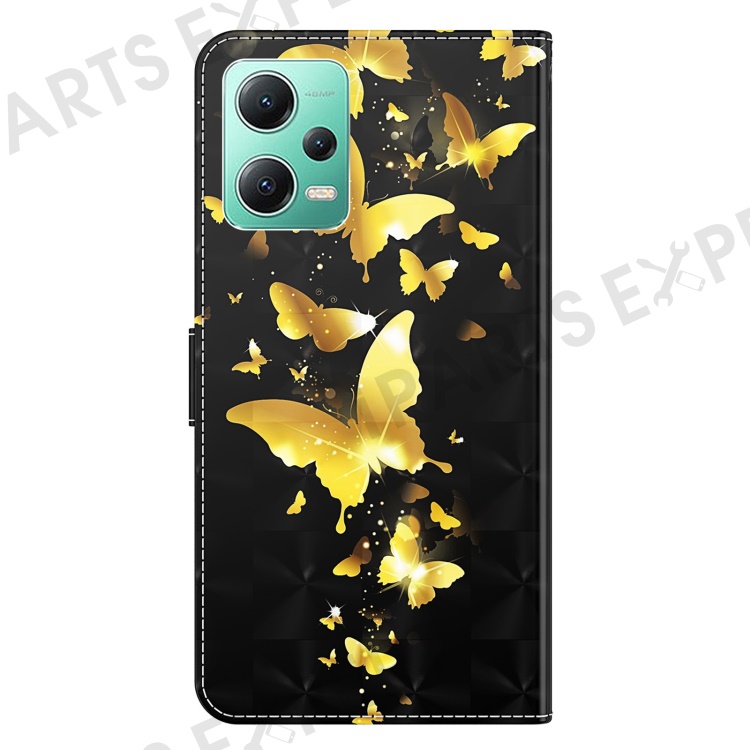 For Xiaomi Redmi Note 12 5G (China) / (India) / (Global) / Poco X5 5G Leather Phone Case 3D Pattern Printing Stand Wallet Cover - Golden Butterflies