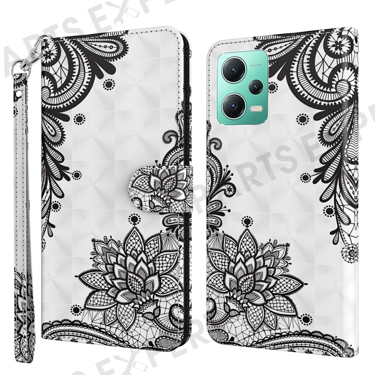 For Xiaomi Redmi Note 12 5G (China) / (India) / (Global) / Poco X5 5G Leather Phone Case 3D Pattern Printing Stand Wallet Cover - Lace Flower