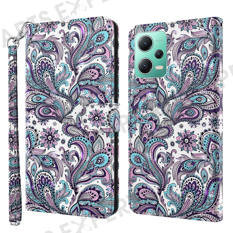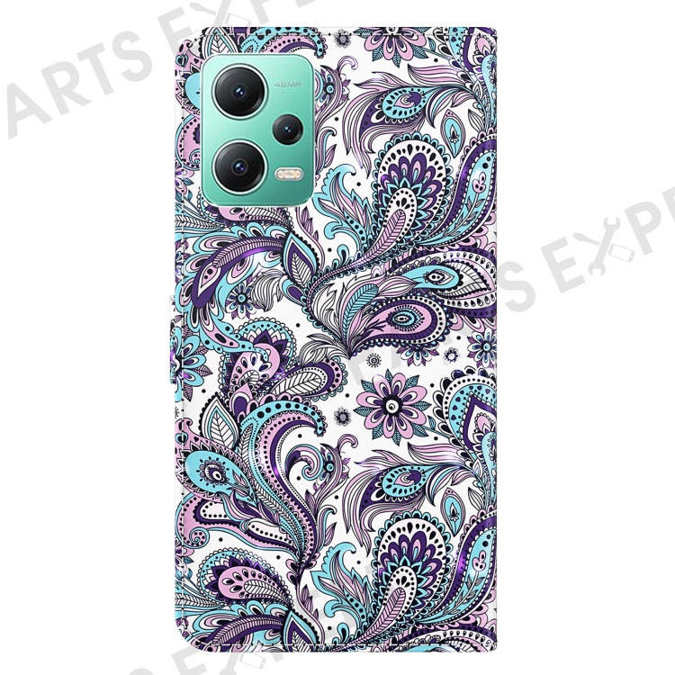 For Xiaomi Redmi Note 12 5G (China) / (India) / (Global) / Poco X5 5G Leather Phone Case 3D Pattern Printing Stand Wallet Cover - Purple Impatiens
