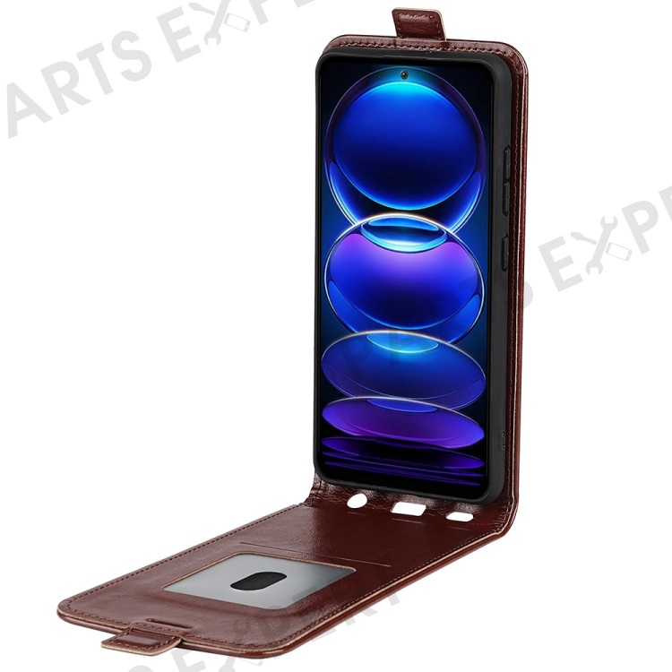 For Xiaomi Redmi Note 12 5G (Global) / (India) / (China) / Poco X5 5G Crazy Horse Texture Card Holder Leather Protective Cover Vertical Flip Case - Brown