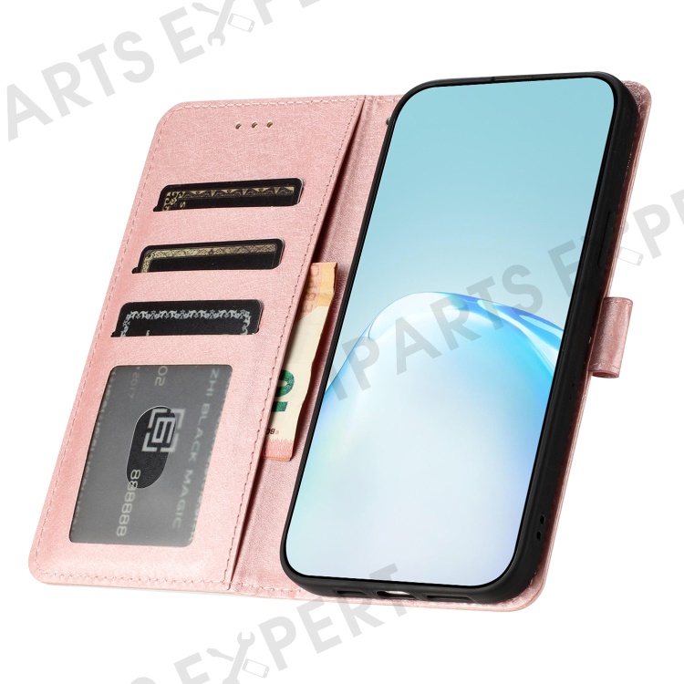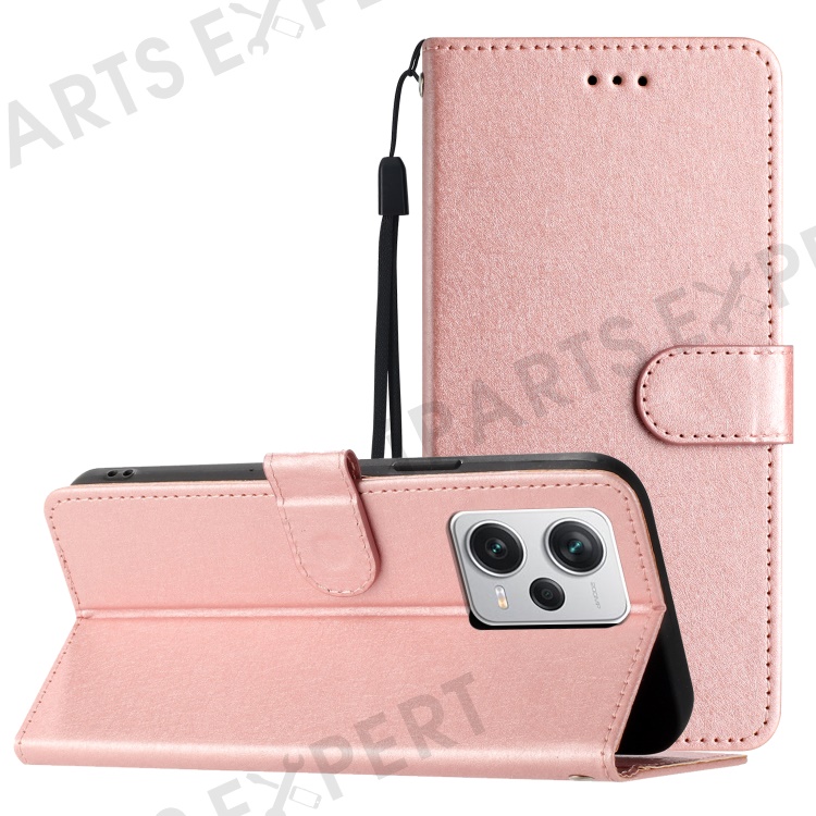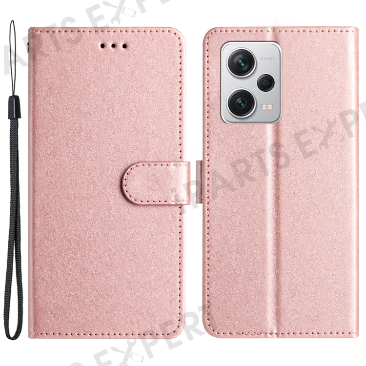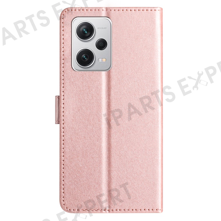 For Xiaomi Redmi Note 12 Pro 5G / 12 Pro Speed 5G / Poco X5 Pro 5G Leather Flip Shell Wallet Stand Silk Texture Phone Case - Rose Gold