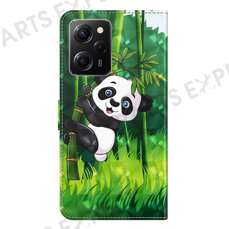 For Xiaomi Redmi Note 12 Pro 5G / Note 12 Pro Speed 5G / Poco X5 Pro 5G Leather Phone Case 3D Pattern Printing Cover Stand Wallet - Panda Climbing