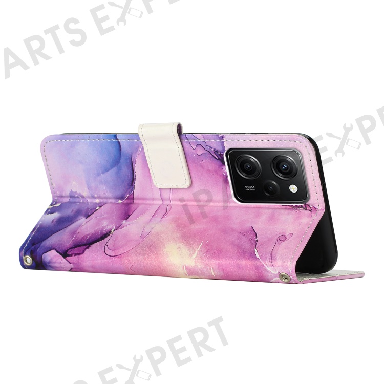For Xiaomi Redmi Note 12 Pro Speed 5G / Poco X5 Pro 5G Leather Phone Stand Case Marble Pattern Wallet Cover with Shoulder Strap - Purple