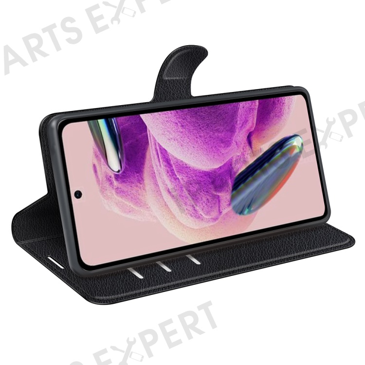 For Xiaomi Redmi Note 12S 4G Litchi Texture Wallet Phone Cover Stand PU Leather Case - Black