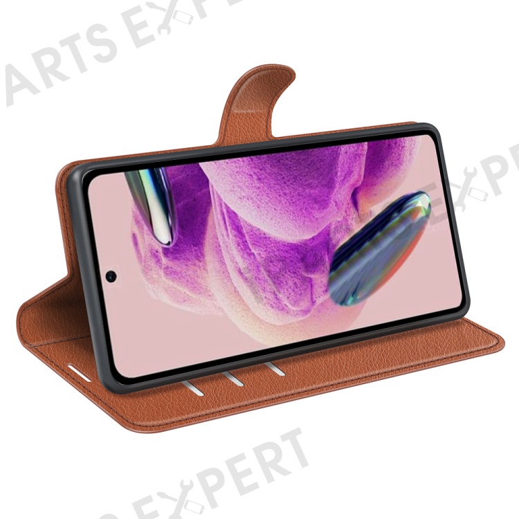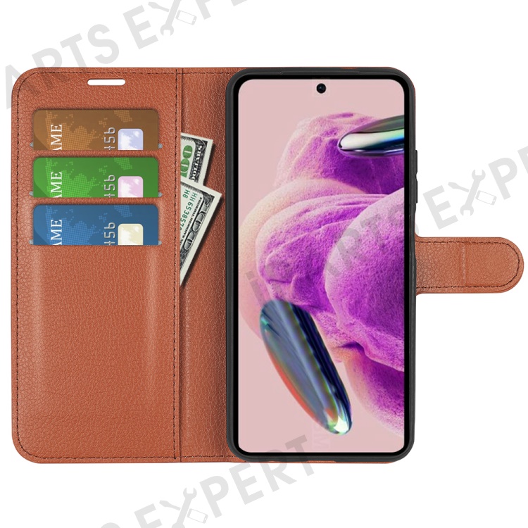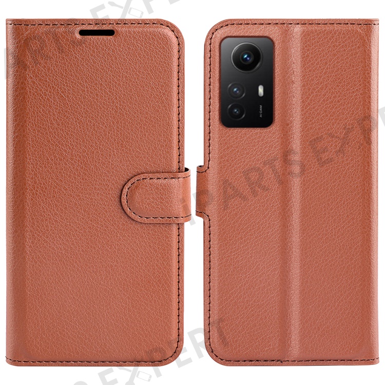 For Xiaomi Redmi Note 12S 4G Litchi Texture Wallet Phone Cover Stand PU Leather Case - Brown