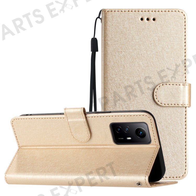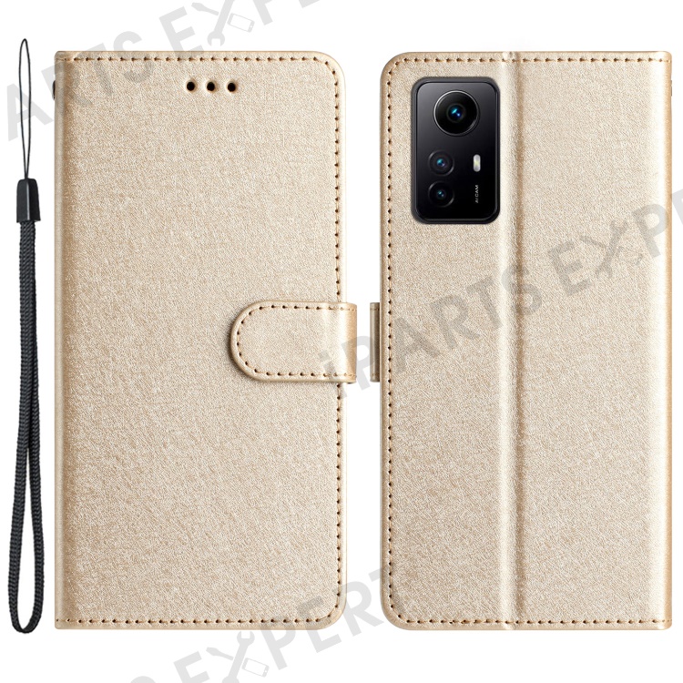 For Xiaomi Redmi Note 12S 4G Magnetic Clasp Wallet Phone Case Silk Texture Leather Stand Cover - Gold